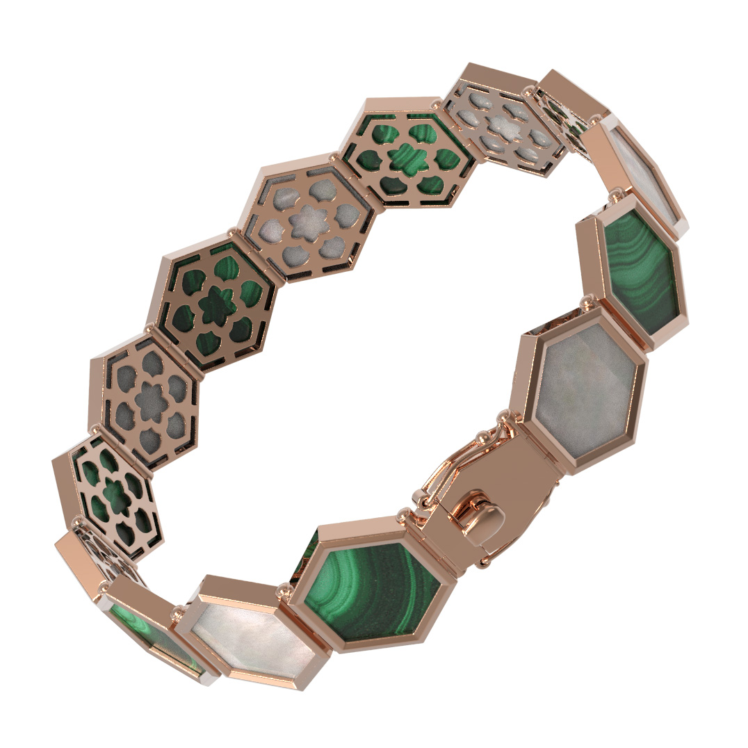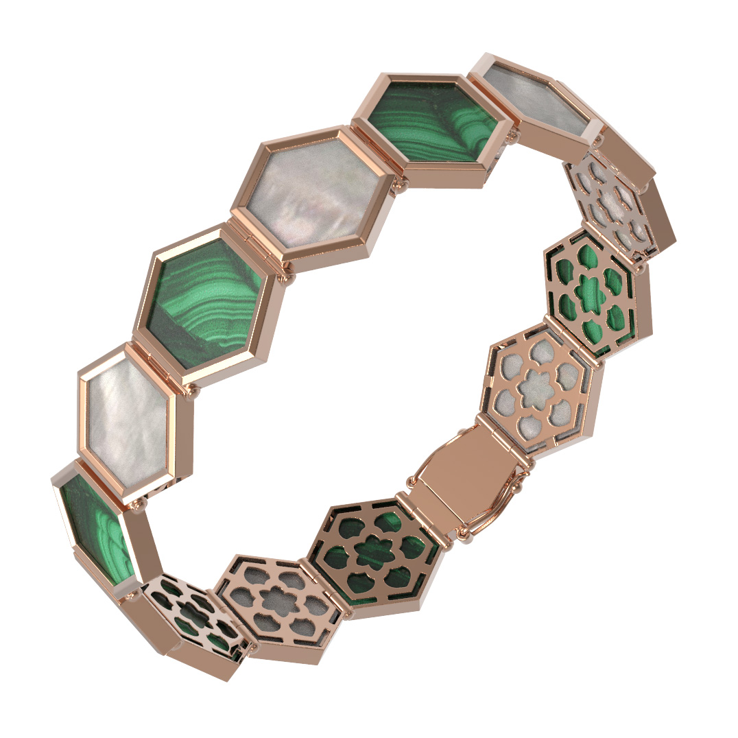 Браслет из золота c малахитом и перламутром
