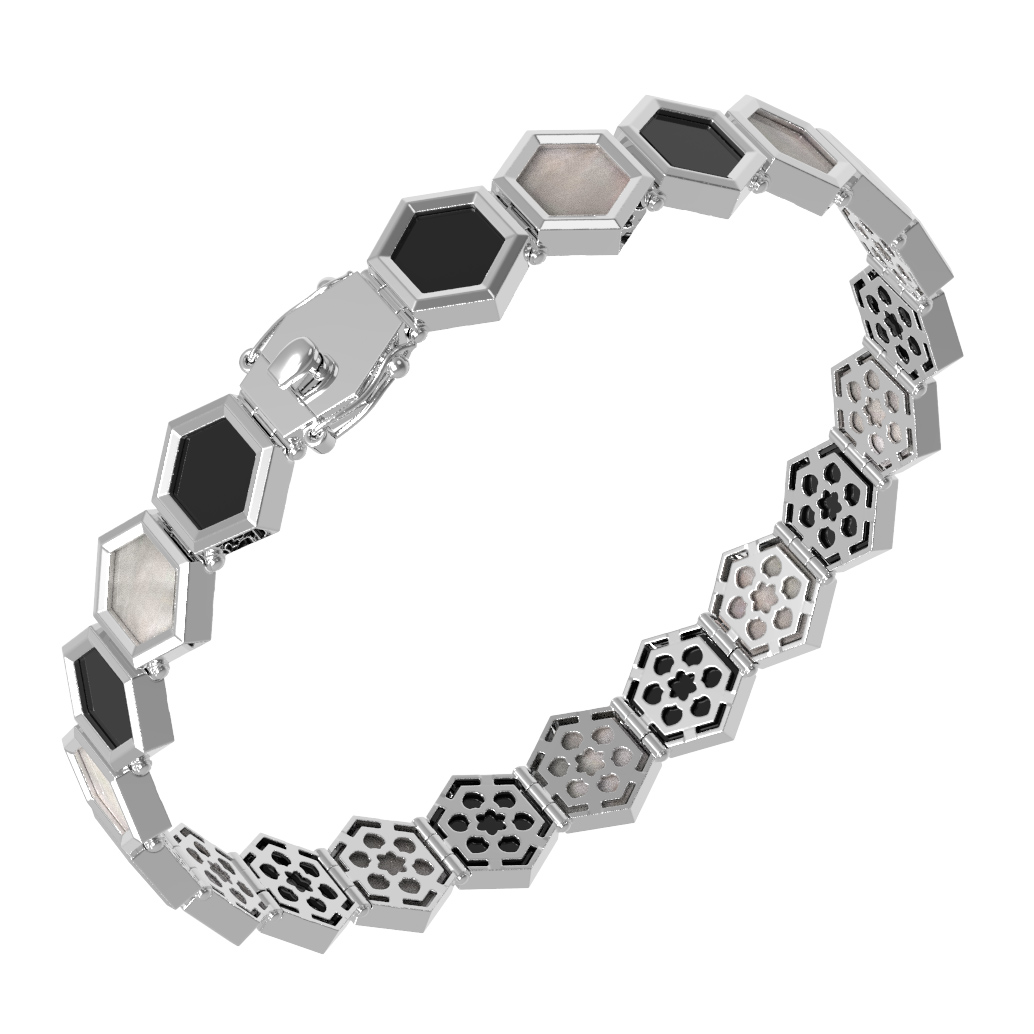 Браслет из белого золота c ониксом и перламутром