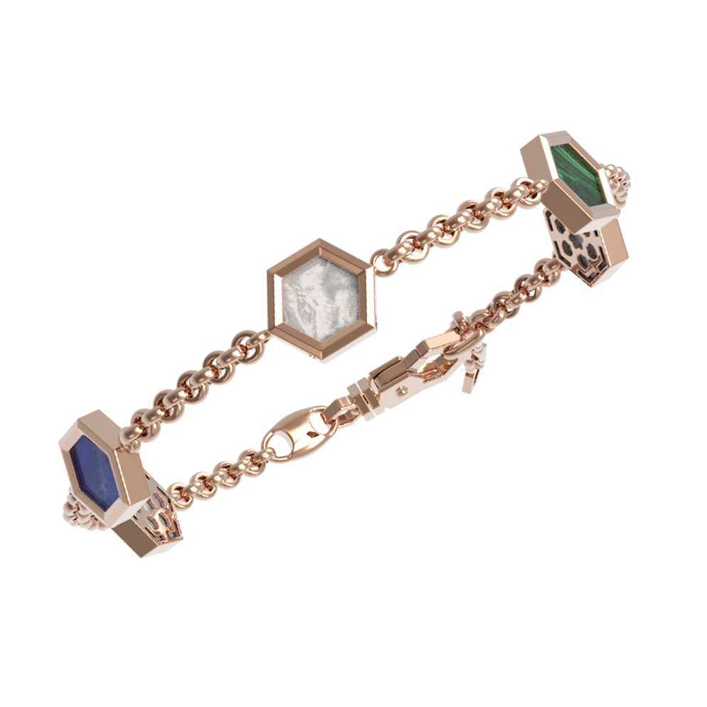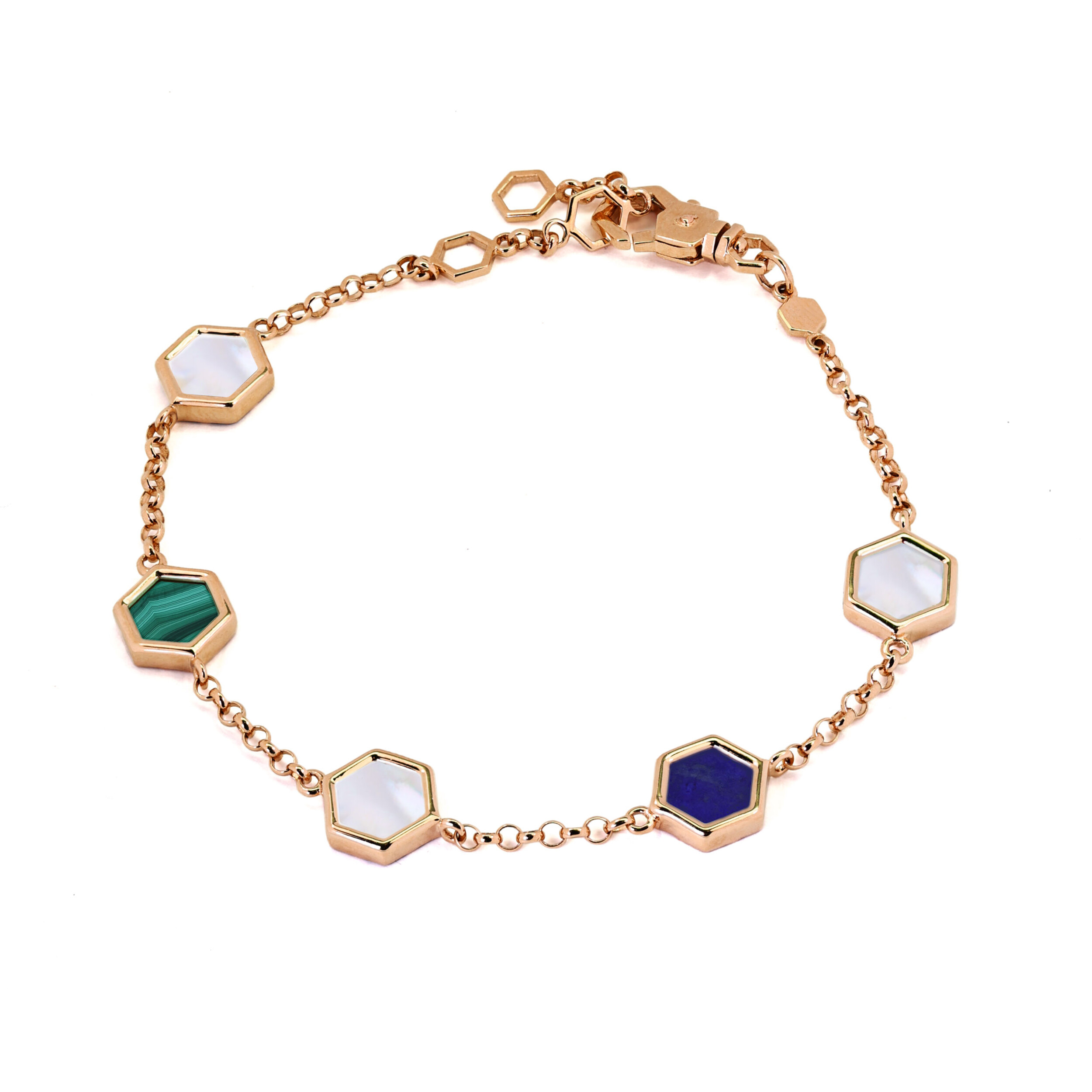 Браслет из золота c лазуритом, малахитом и перламутром