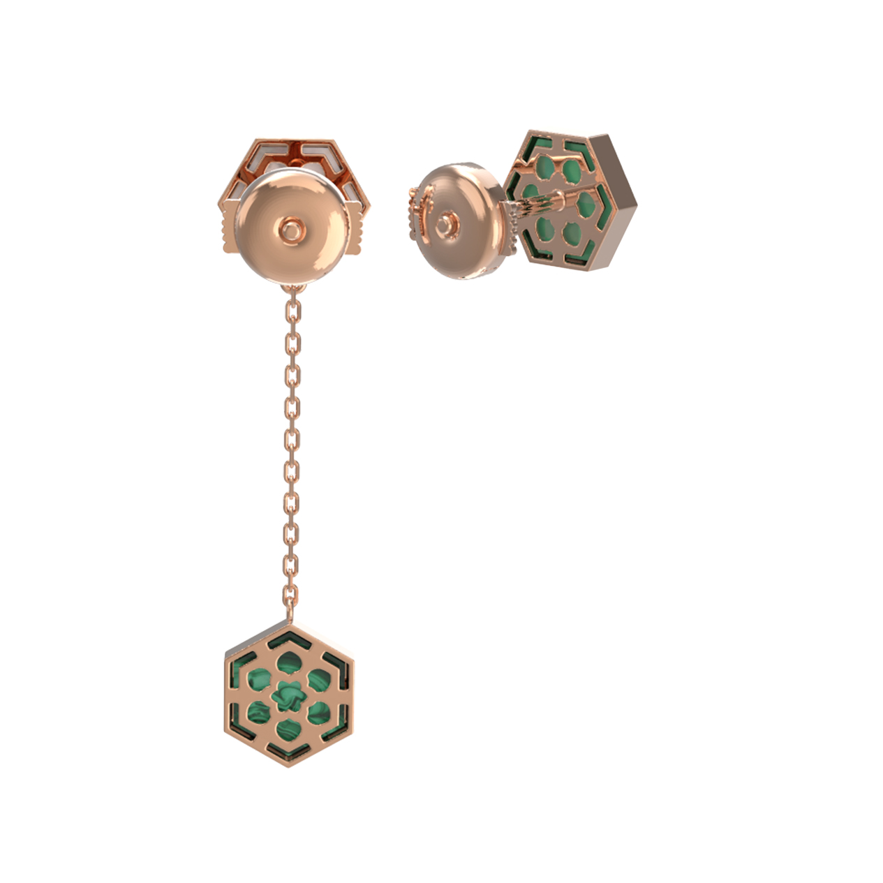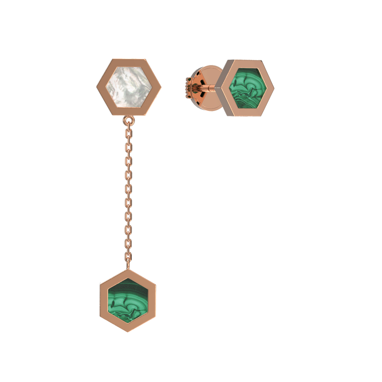 Серьги из золота c малахитом и перламутром