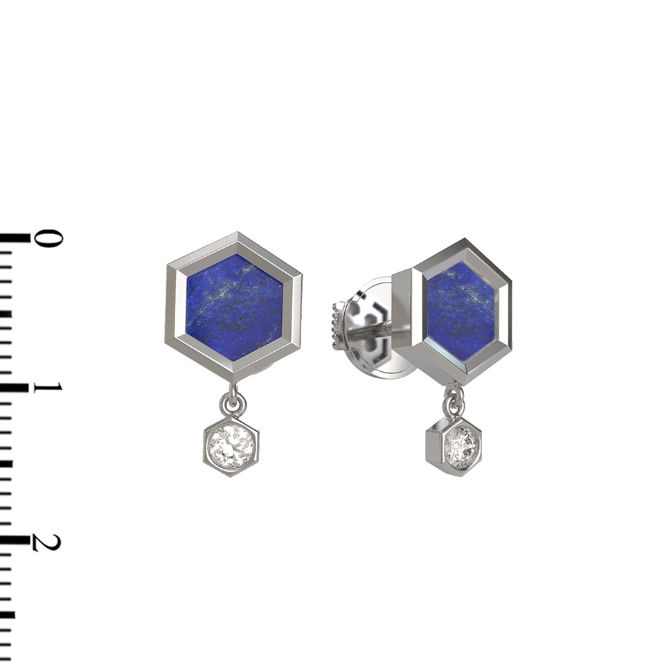 Серьги из белого золота c бриллиантами и лазуритом