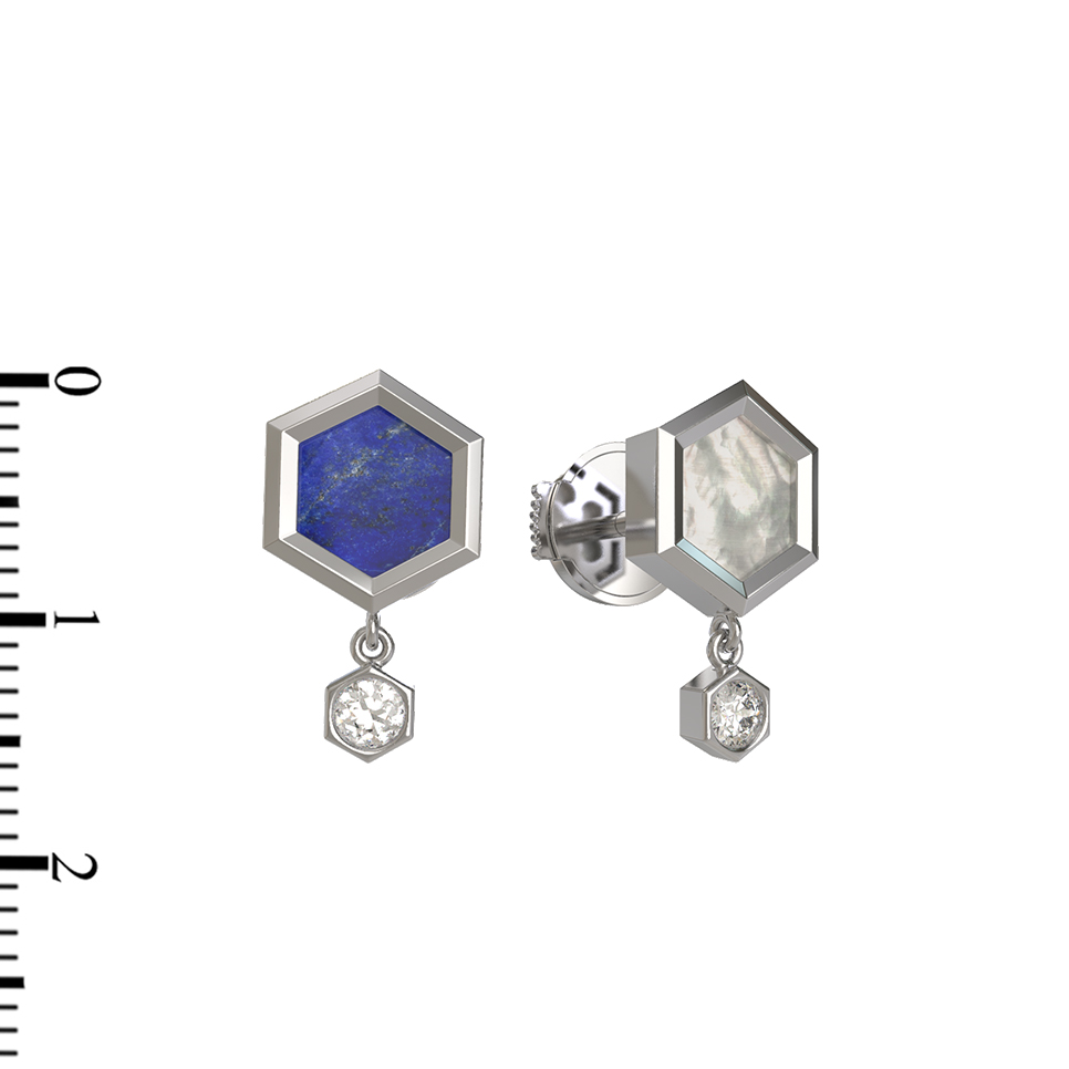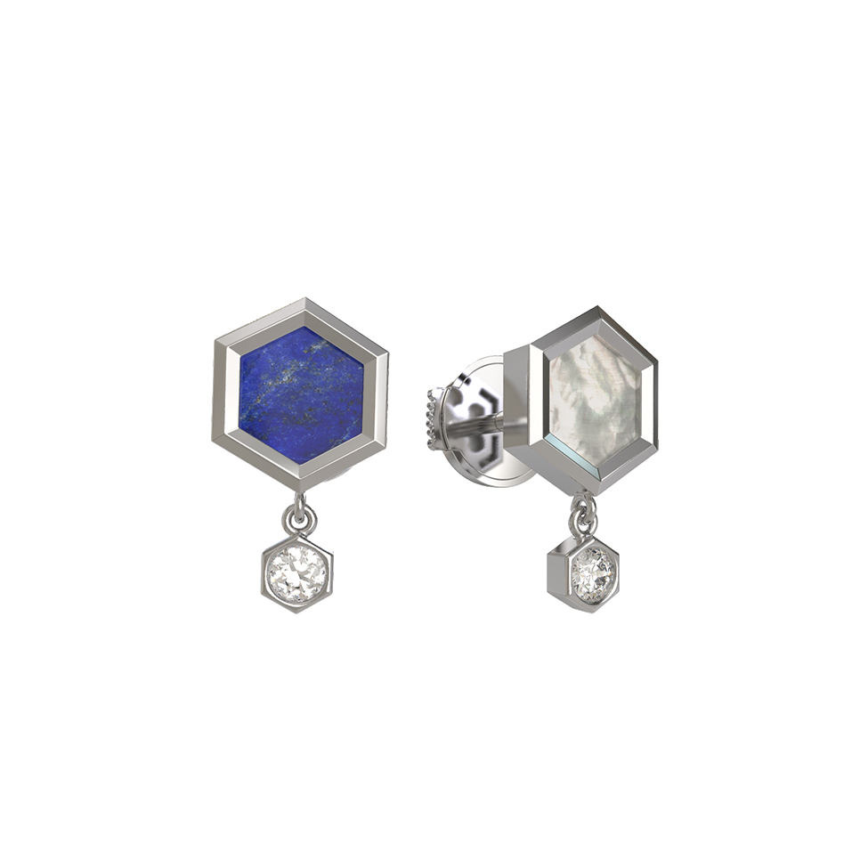 Серьги из белого золота c бриллиантами, лазуритом и перламутром