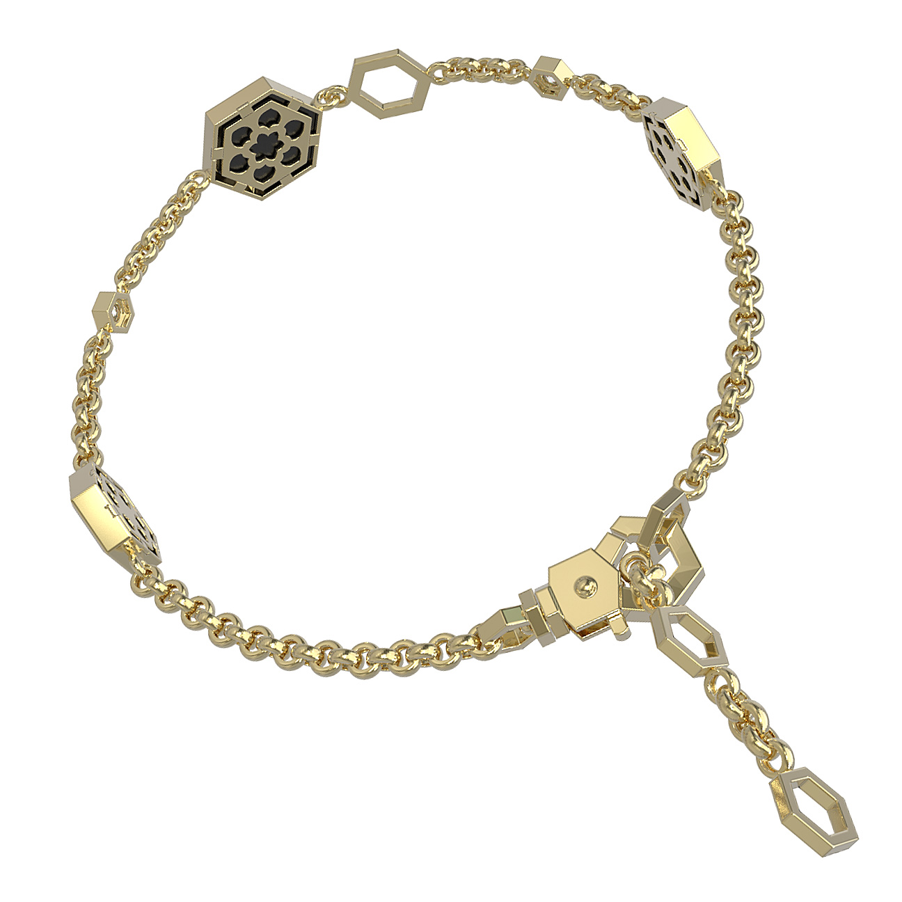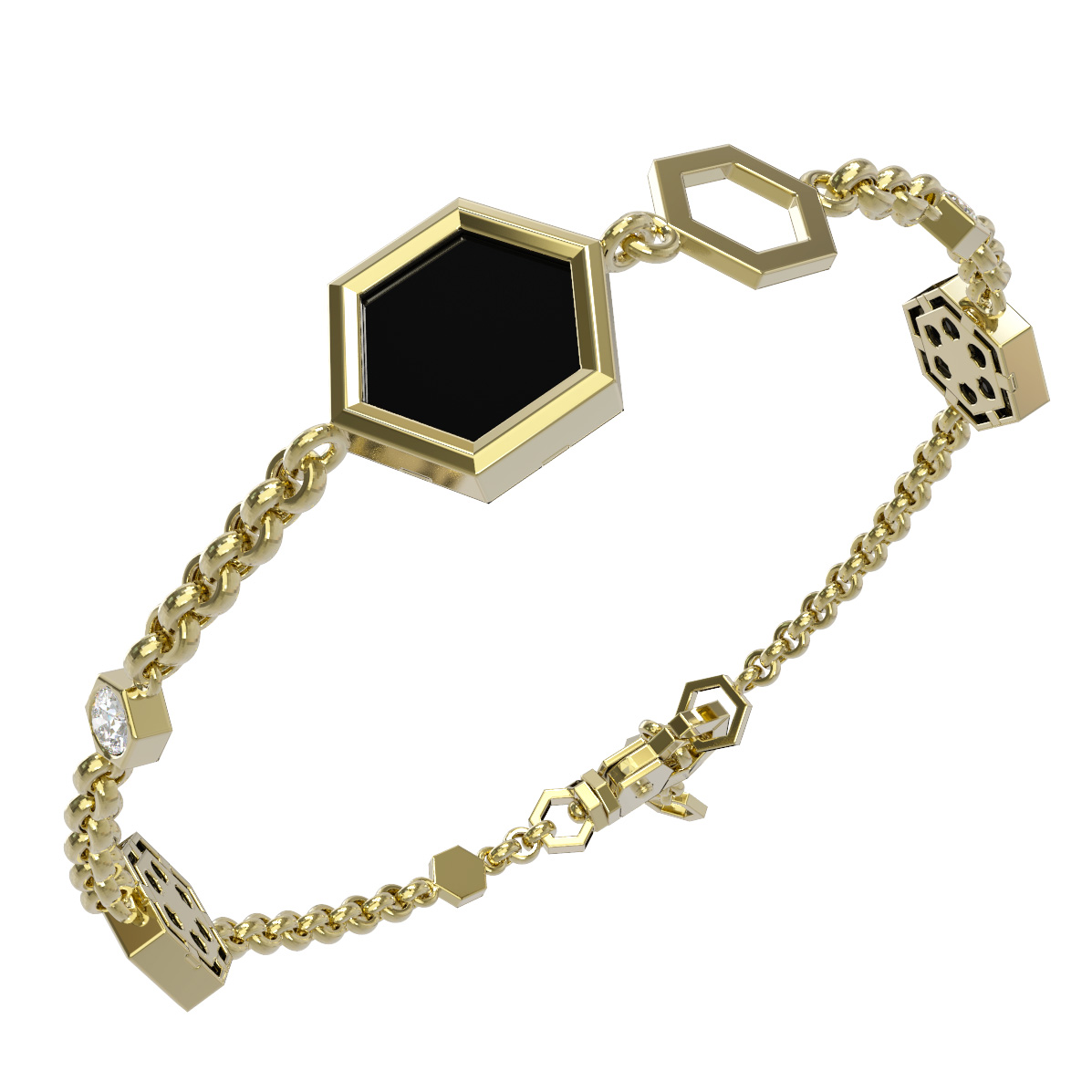 Браслет из лимонного золота c бриллиантами, ониксом и перламутром