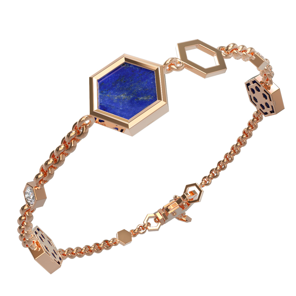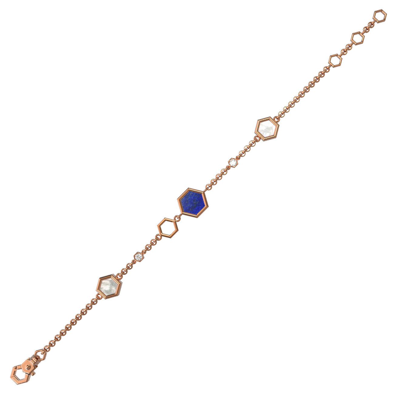 Браслет из золота c бриллиантами, лазуритом и перламутром