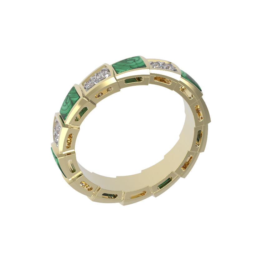 Кольцо из лимонного золота c бриллиантами и малахитом