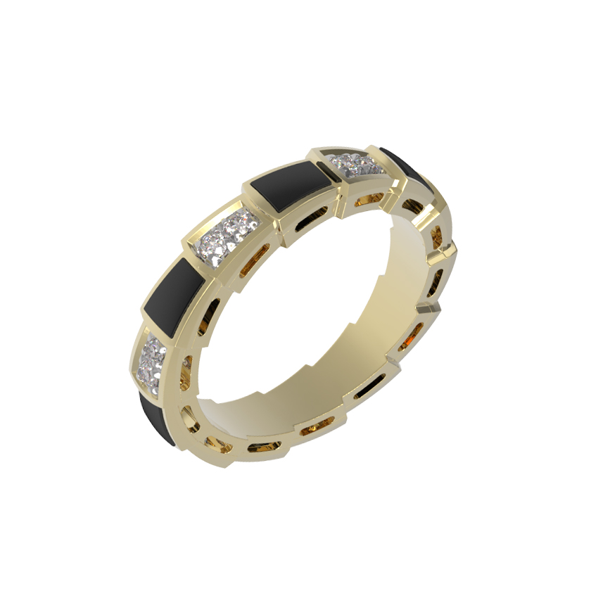 Кольцо из лимонного золота c бриллиантами и ониксом