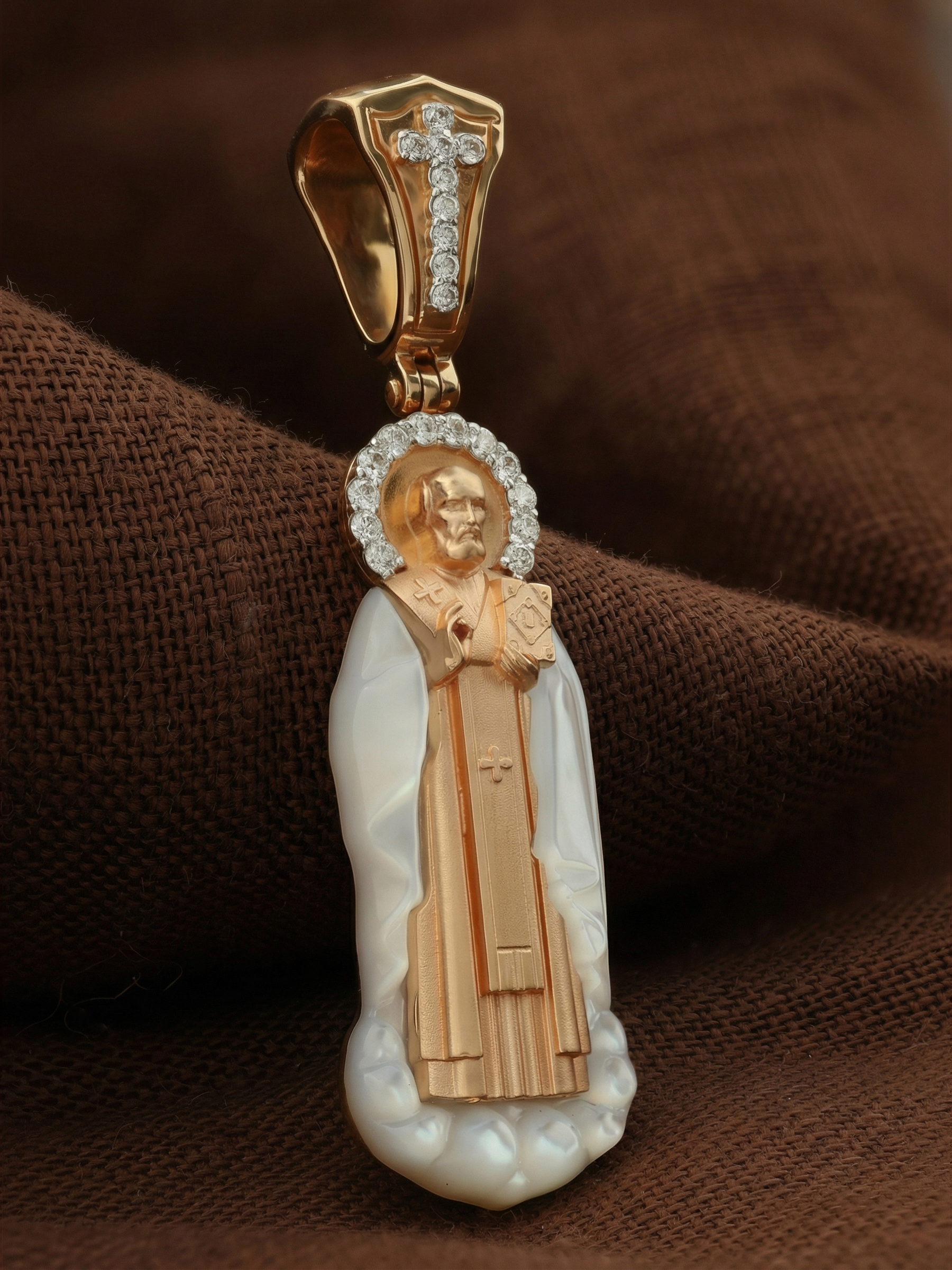 Образок из золота c бриллиантами и перламутром