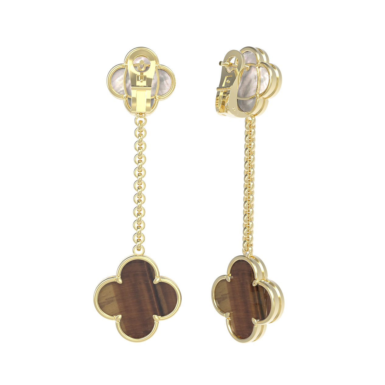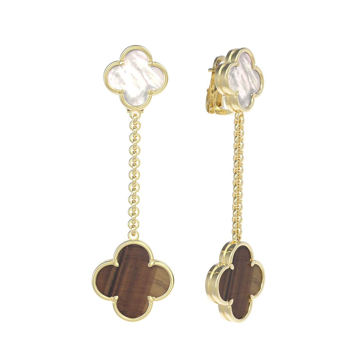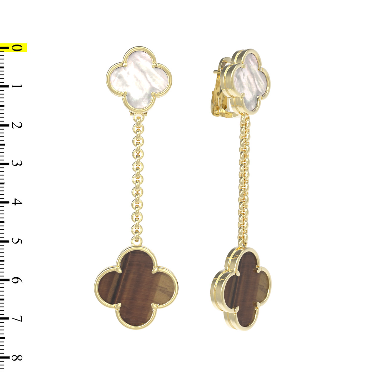 Серьги из лимонного золота c тигровым глазом и перламутром