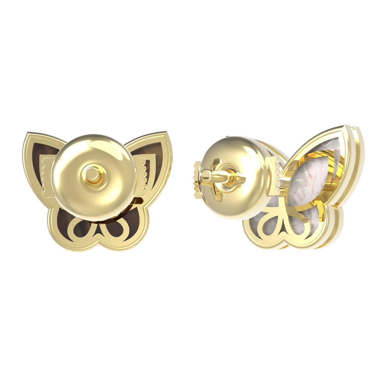 Серьги из лимонного золота c тигровым глазом и перламутром