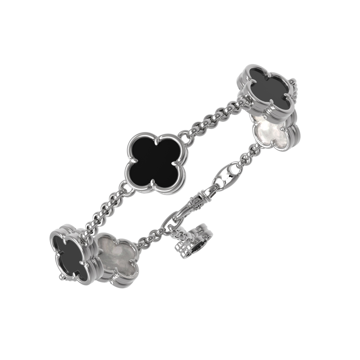 Браслет из белого золота c ониксом и перламутром