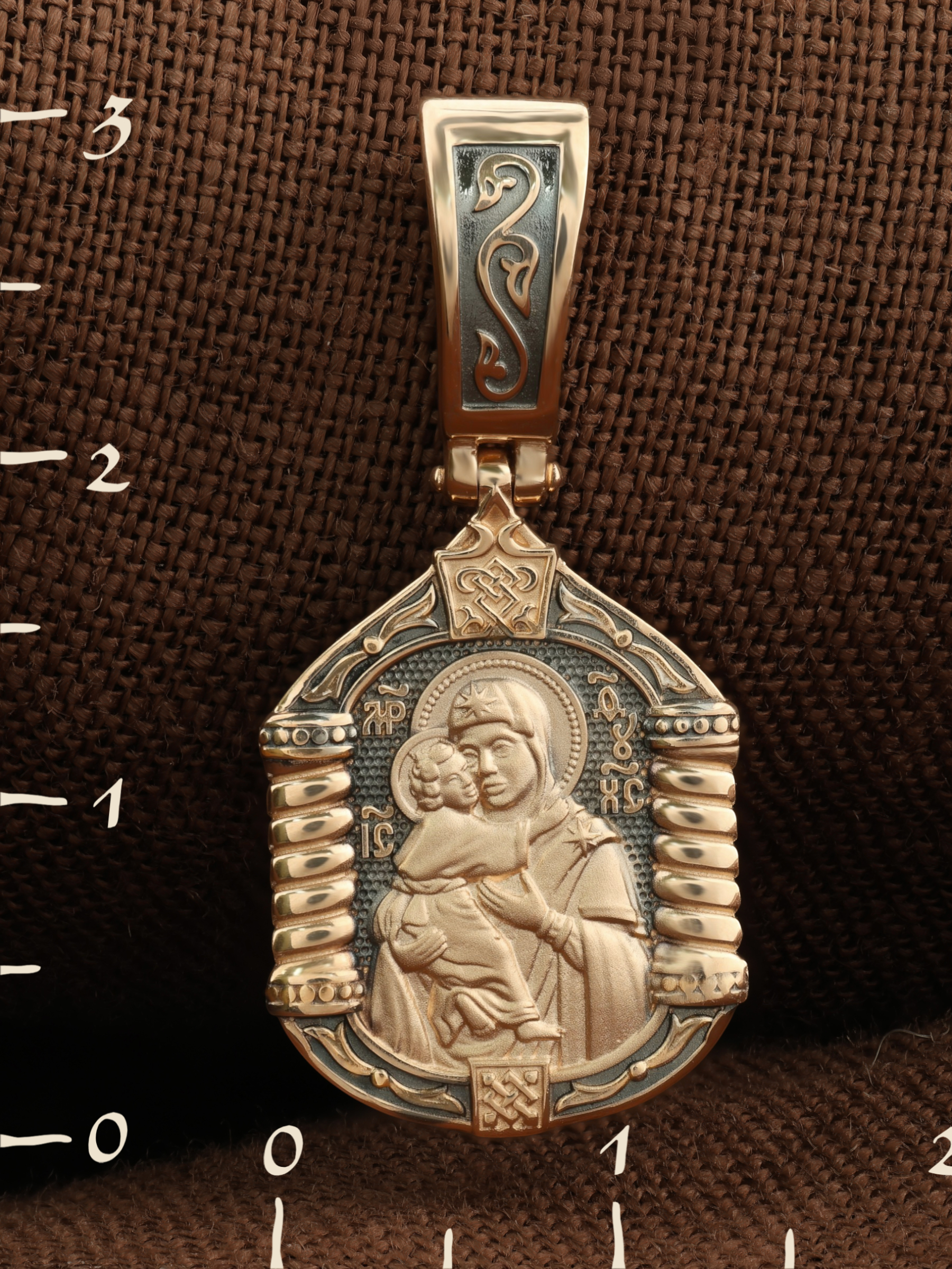 На лицевой стороне образка изображена Владимирская икона Божией Матери.