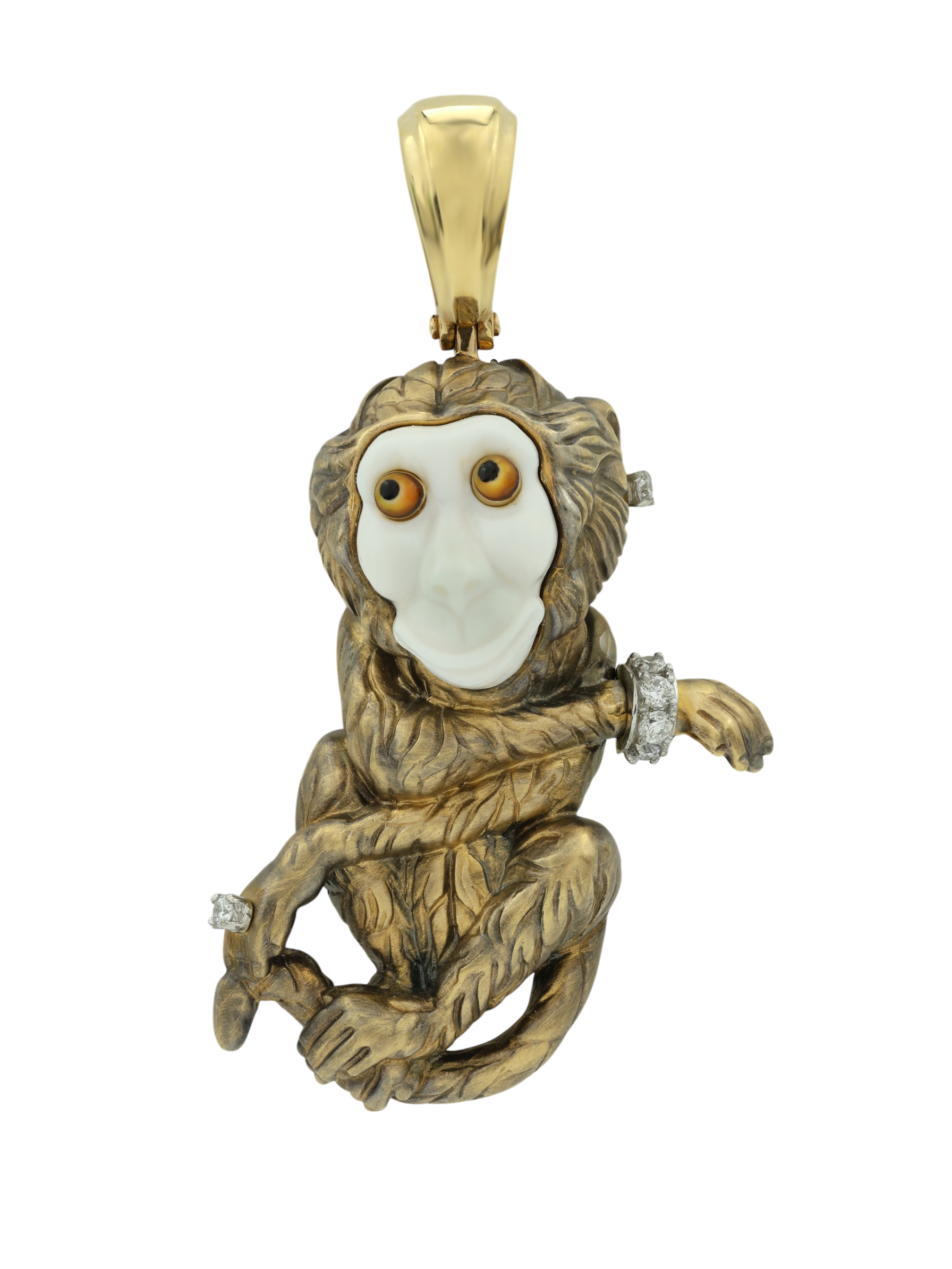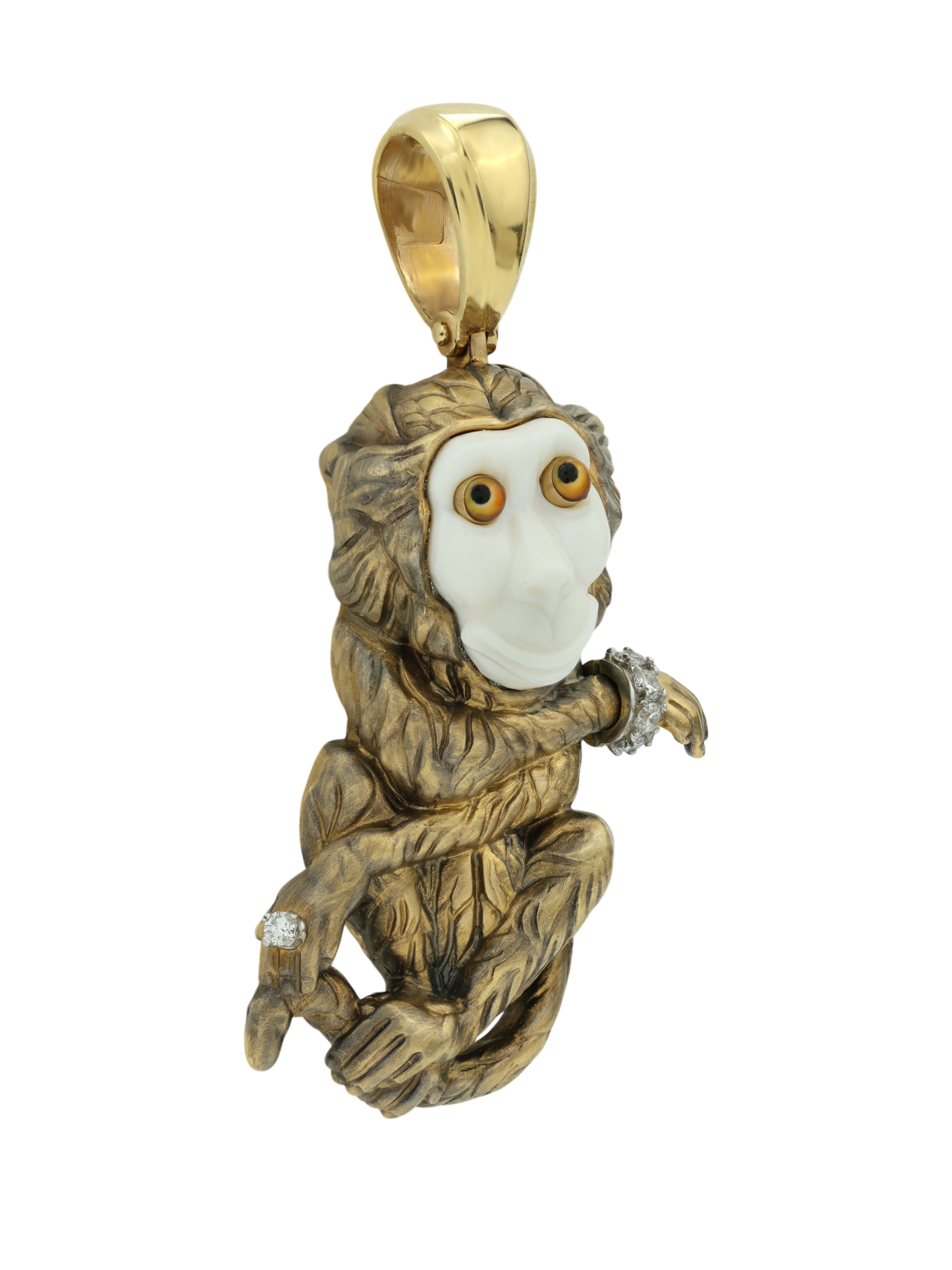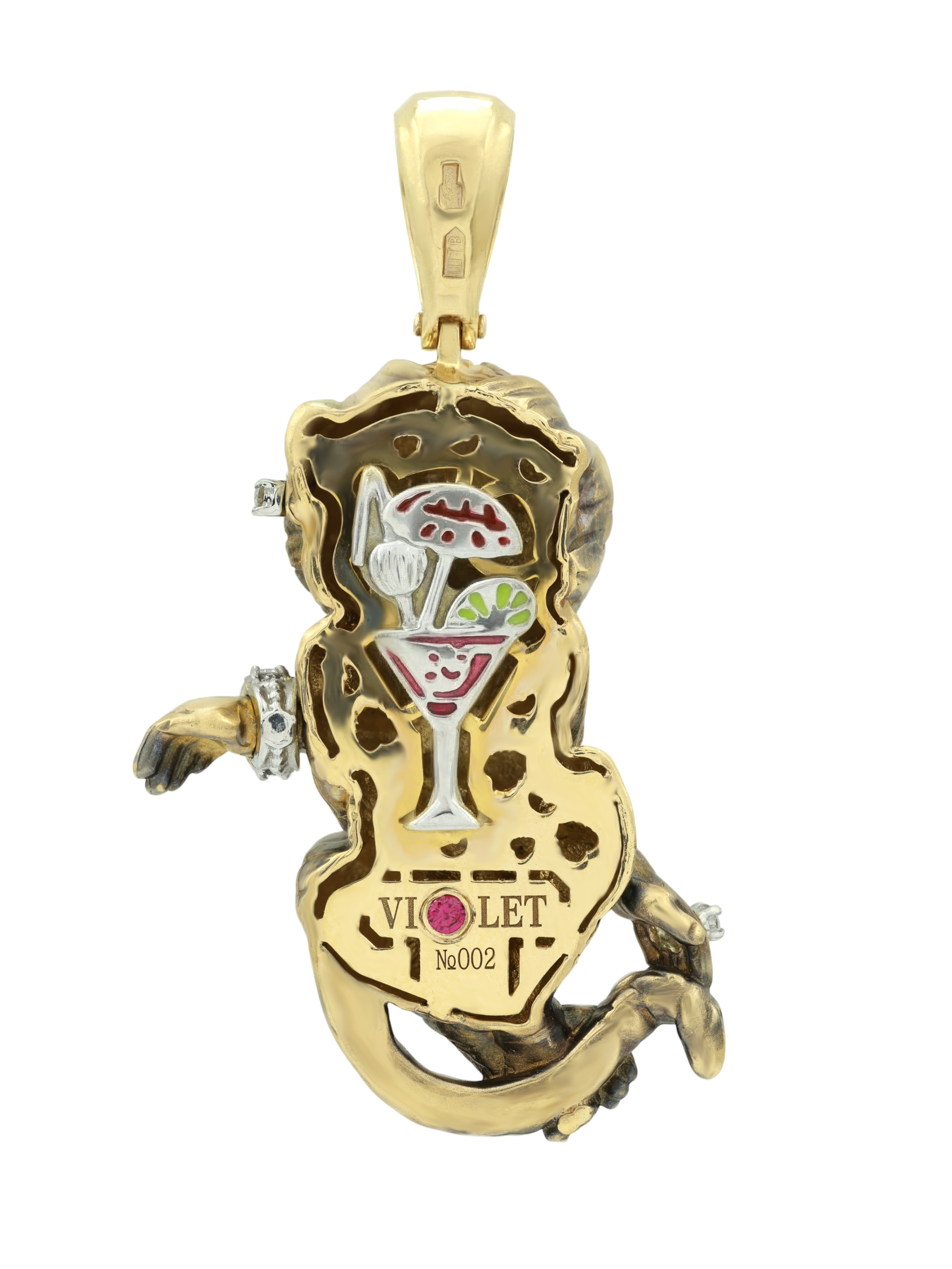 Подвеска из лимонного золота c эмаль, бриллиантами, рубином и бивнем мамонта