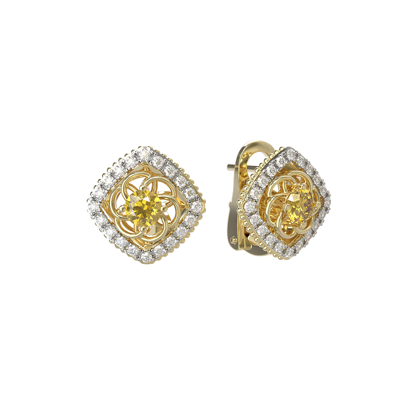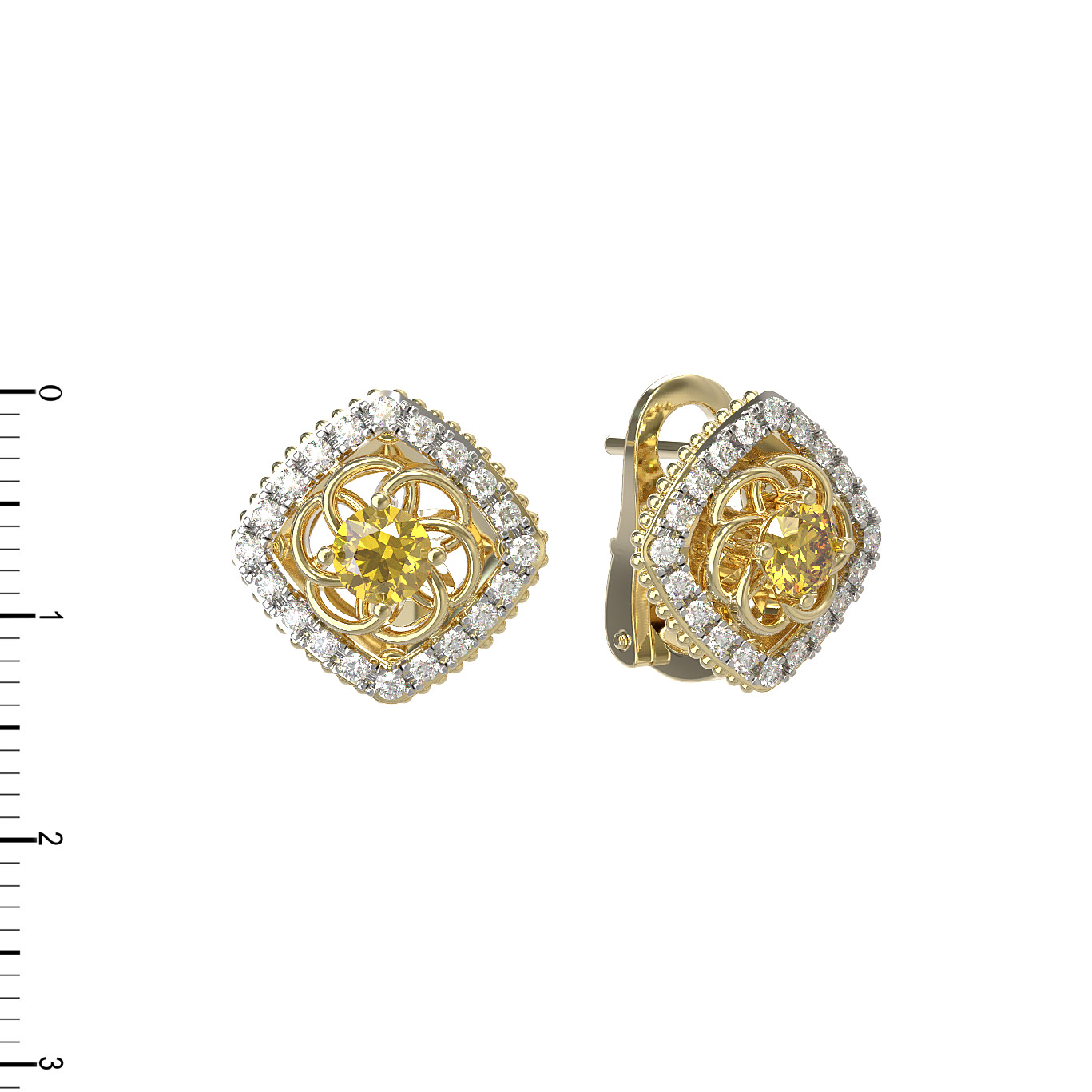 Серьги из лимонного золота c бриллиантами и сапфиром