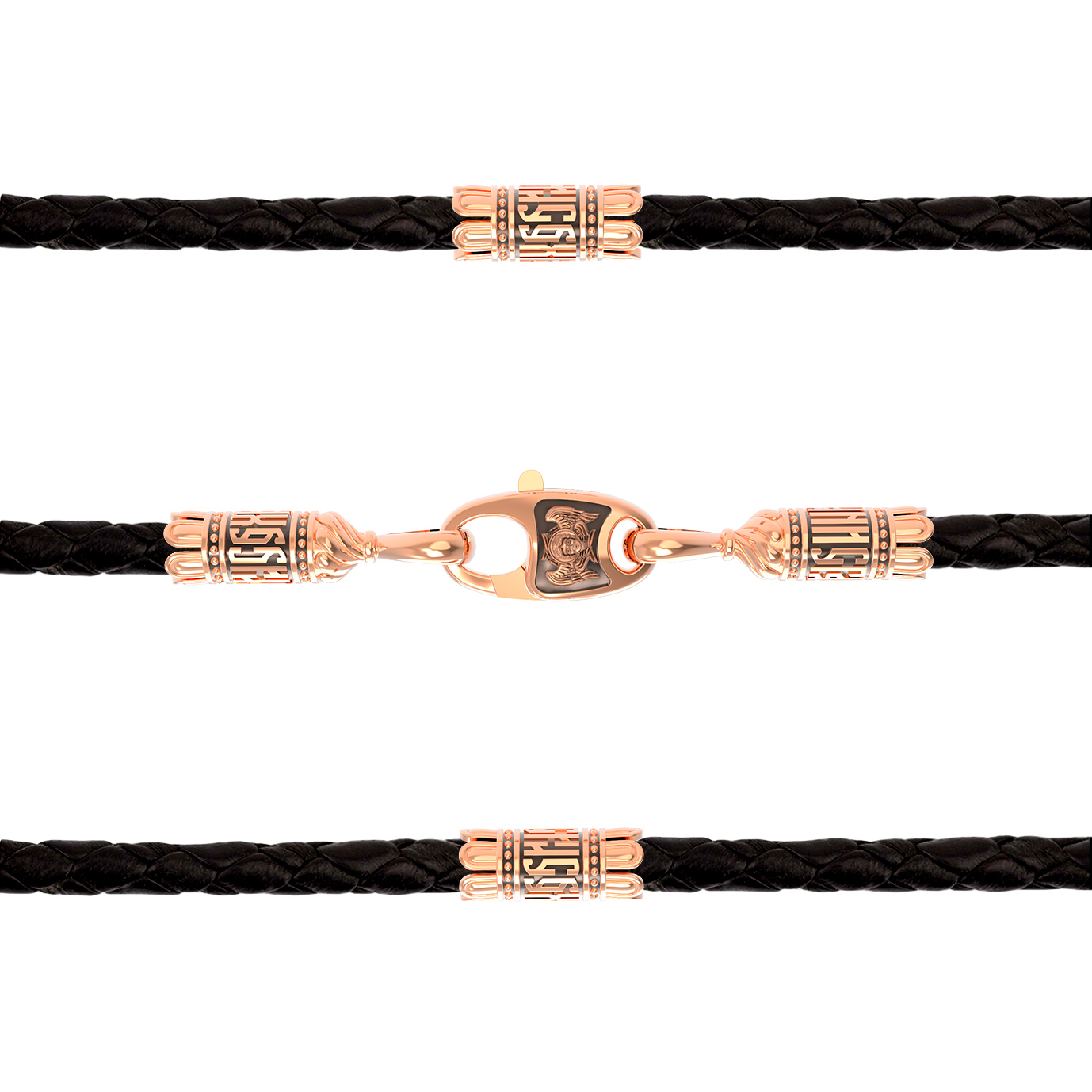 Гайтан из золота c кожаным шнурком
