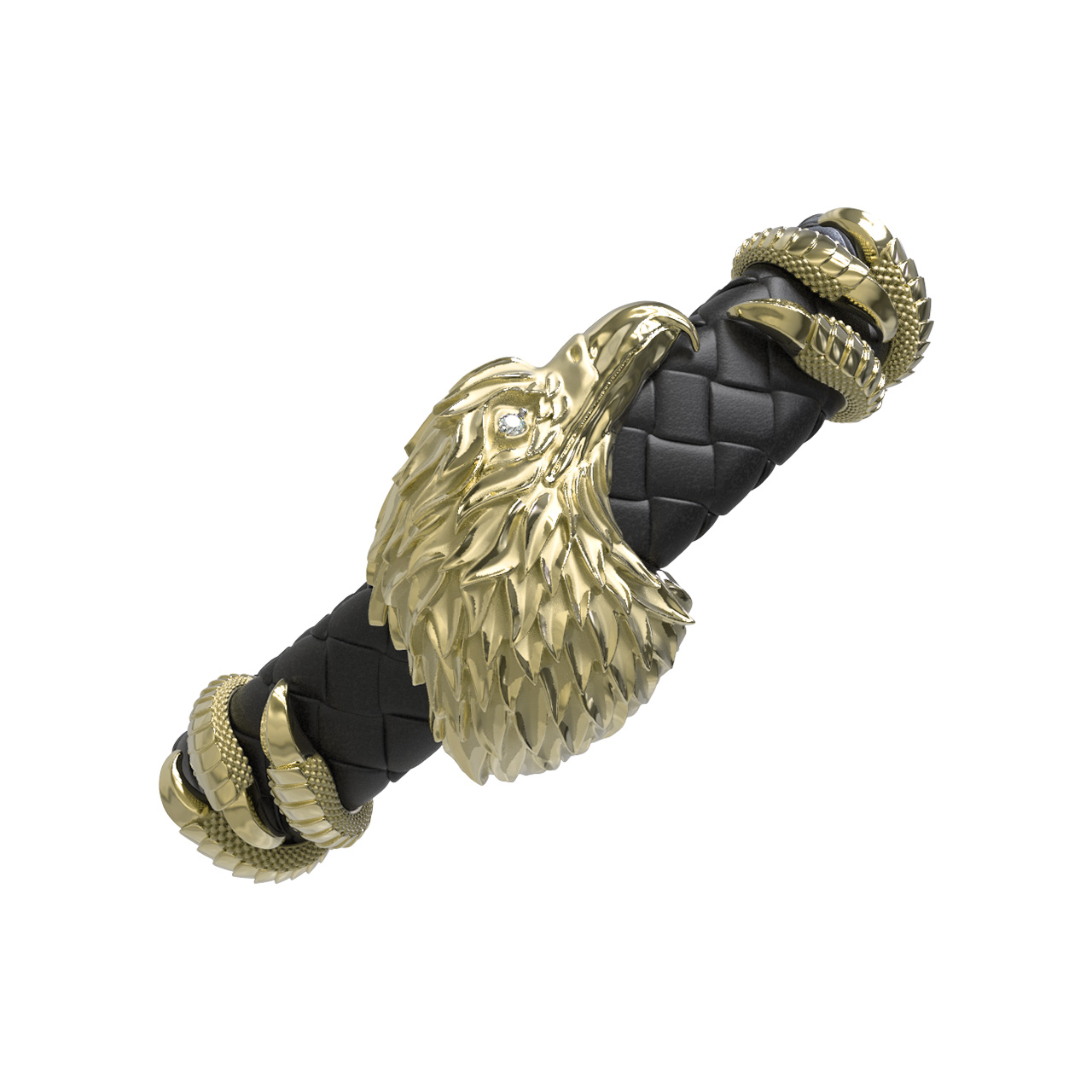 Браслет из лимонного золота c бриллиантами и кожаным шнурком