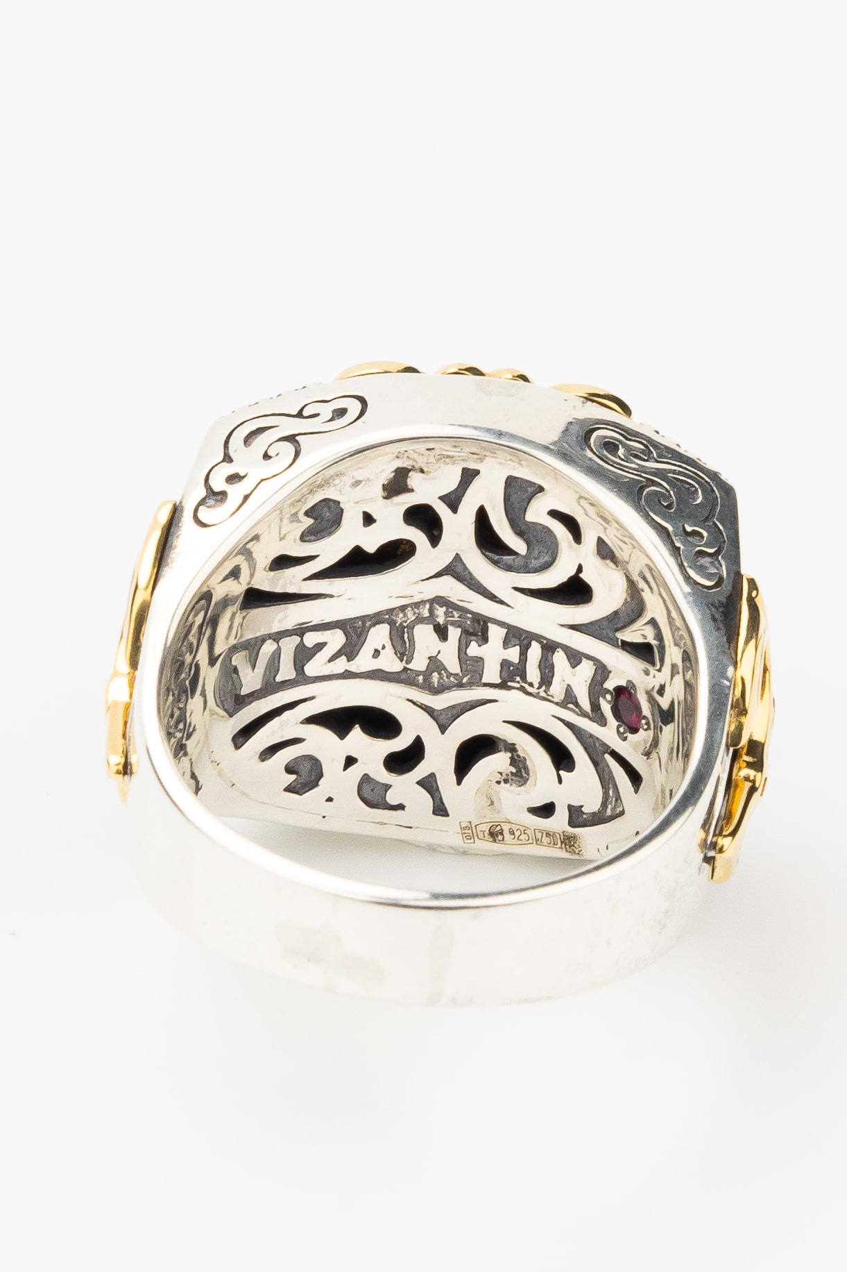 Кольцо из серебра и золота c рубином