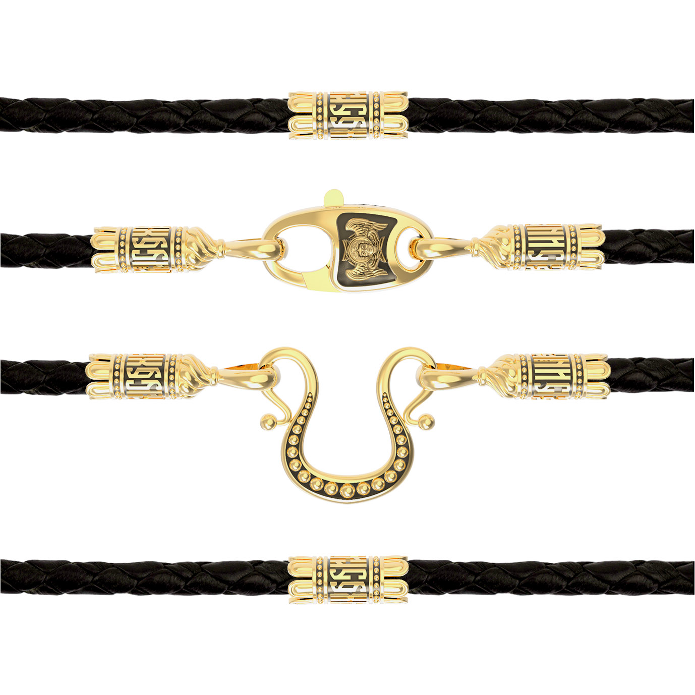 Гайтан из лимонного золота c кожаным шнурком