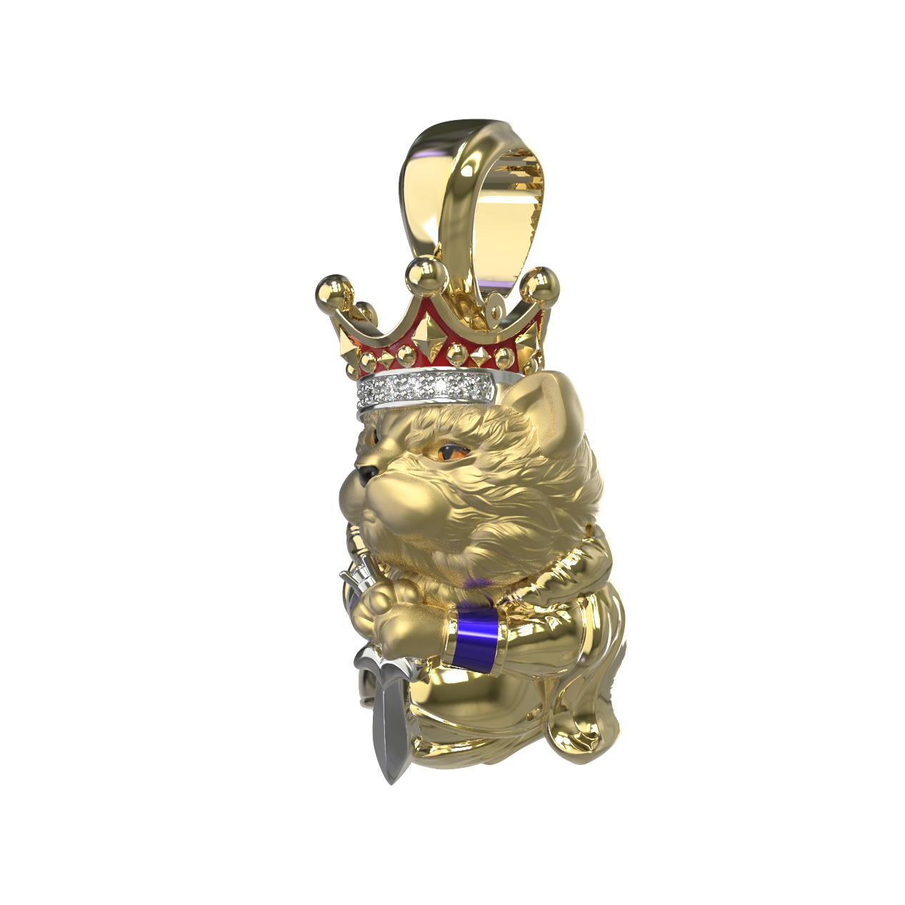 Подвеска из лимонного золота c эмалью, бриллиантами и рубином