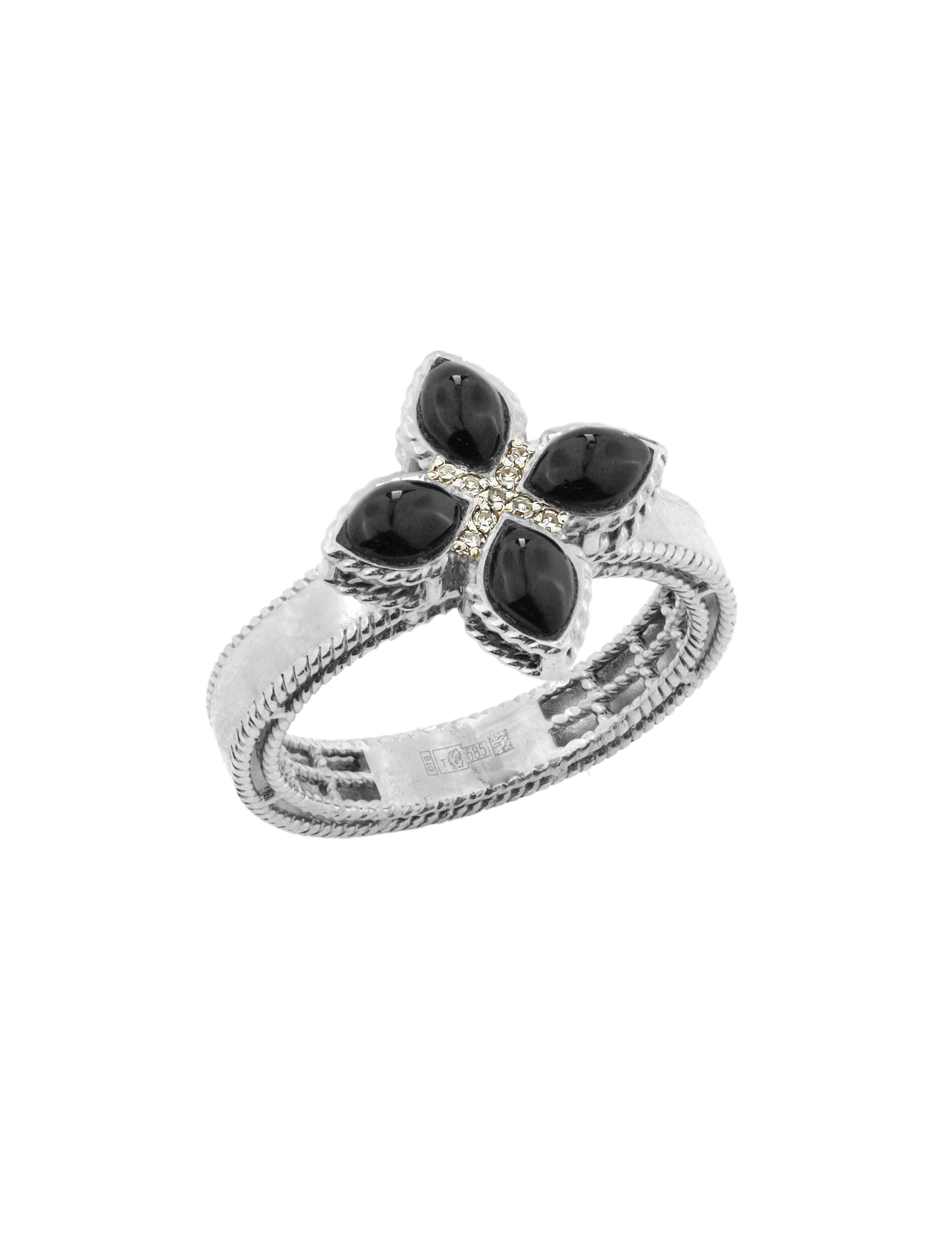 Кольцо из белого золота c бриллиантами и ониксом