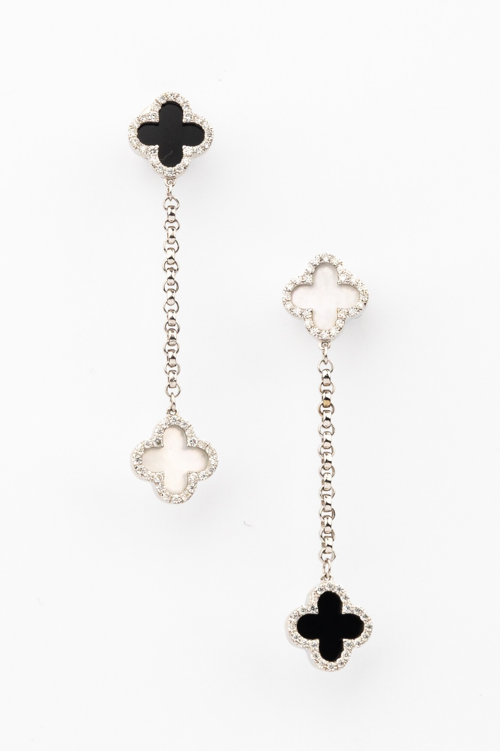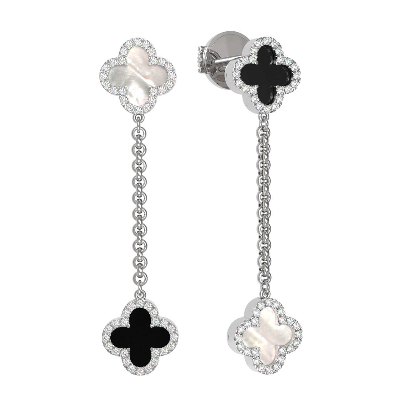 Серьги из белого золота c бриллиантами, ониксом и перламутром