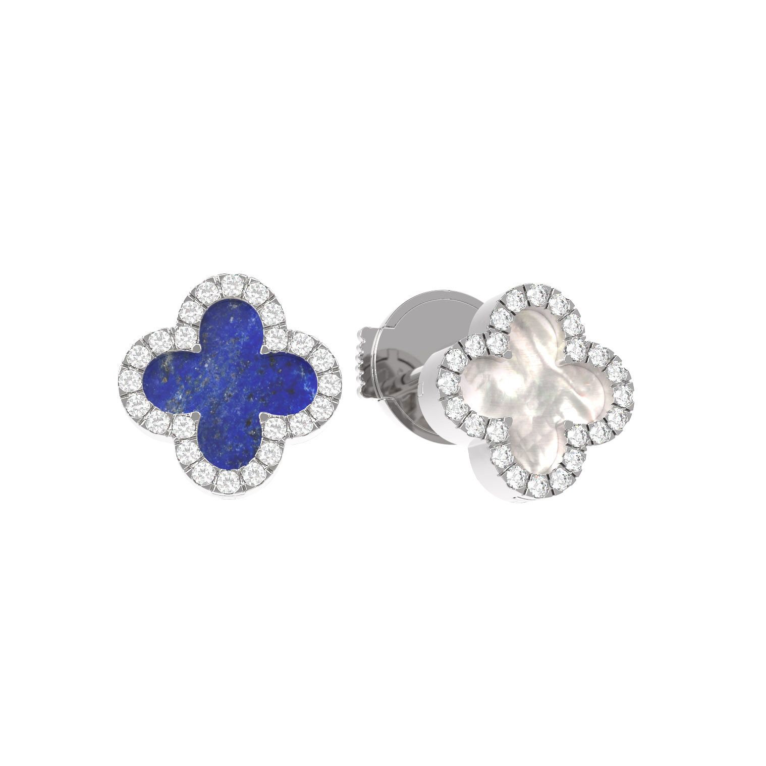 Серьги из белого золота c бриллиантами, лазуритом и перламутром