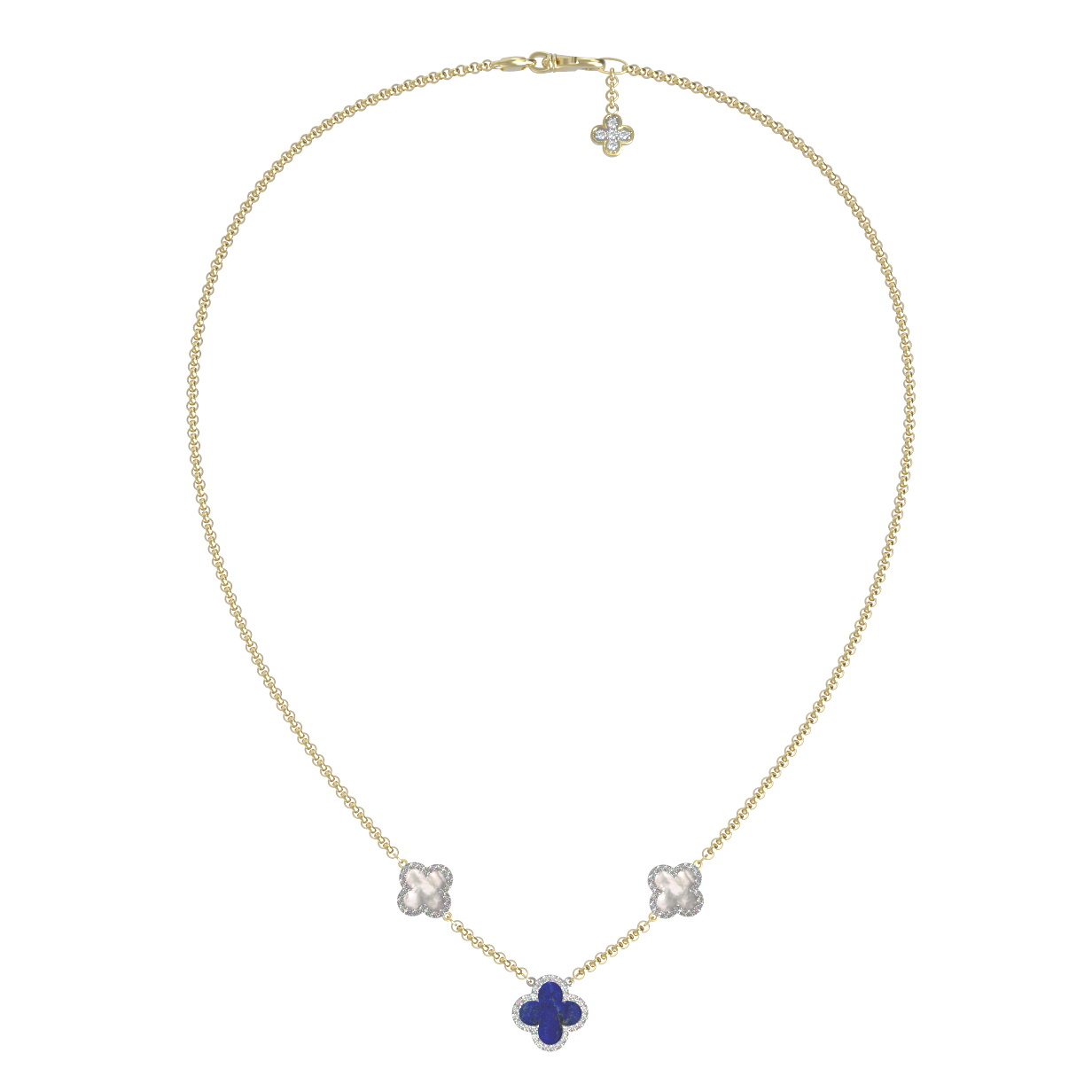 Колье из лимонного золота c бриллиантами, лазуритом и перламутром