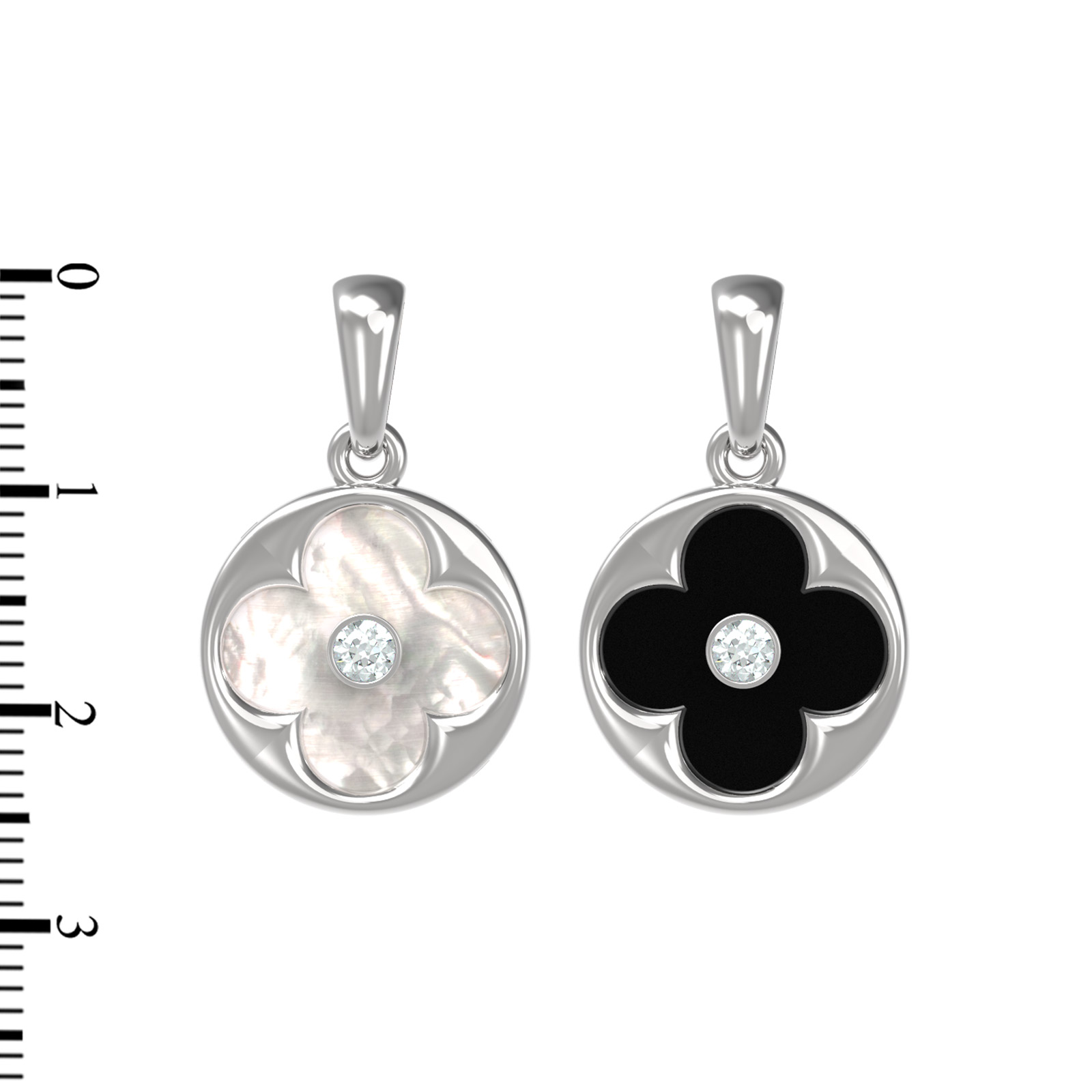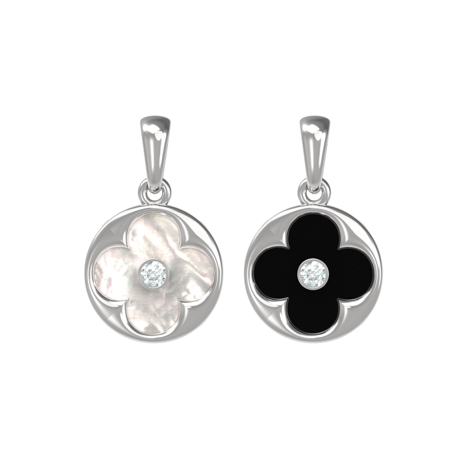 Подвеска из белого золота c бриллиантами, ониксом и перламутром