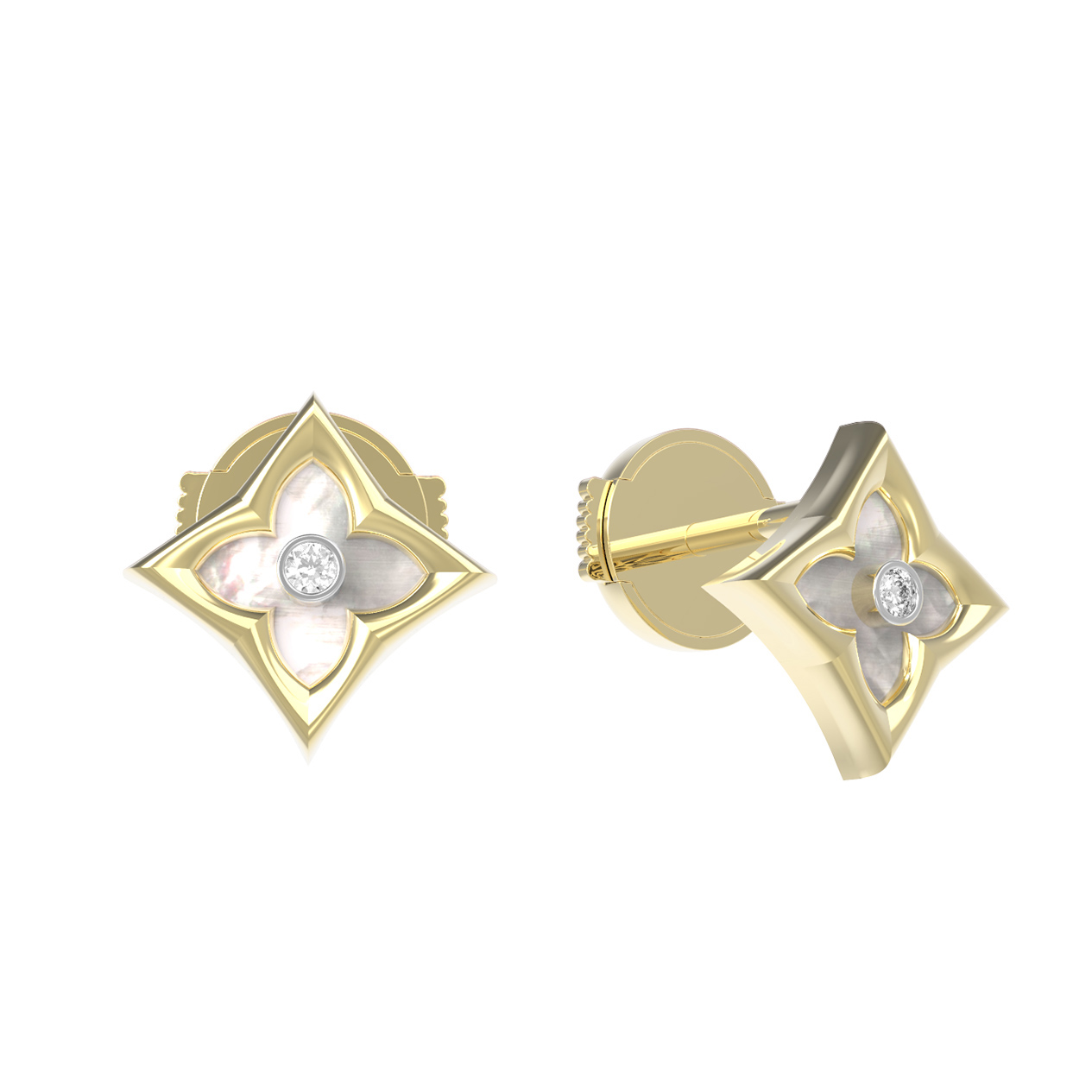 Серьги из лимонного золота c бриллиантами и перламутром