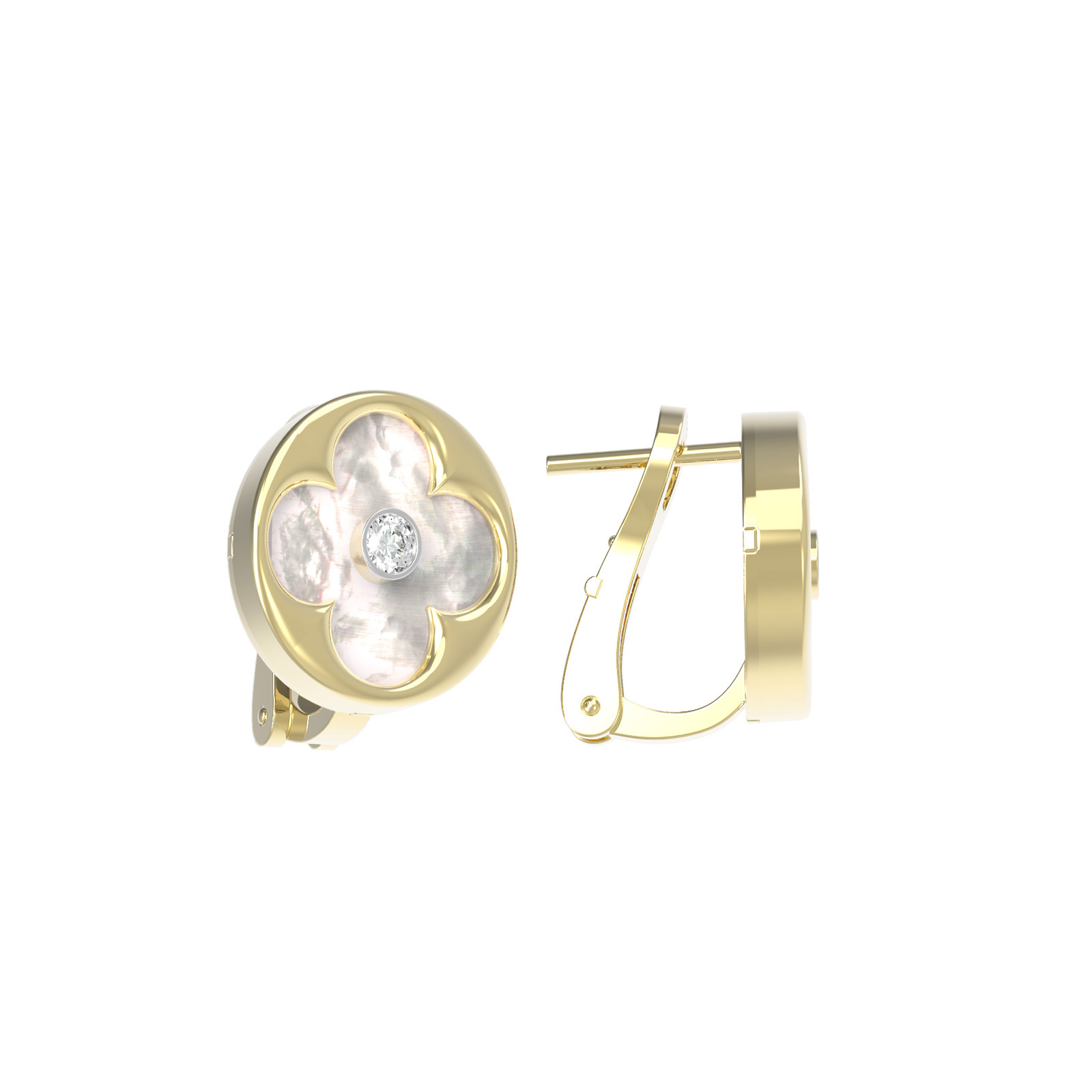 Серьги из лимонного золота c бриллиантами и перламутром