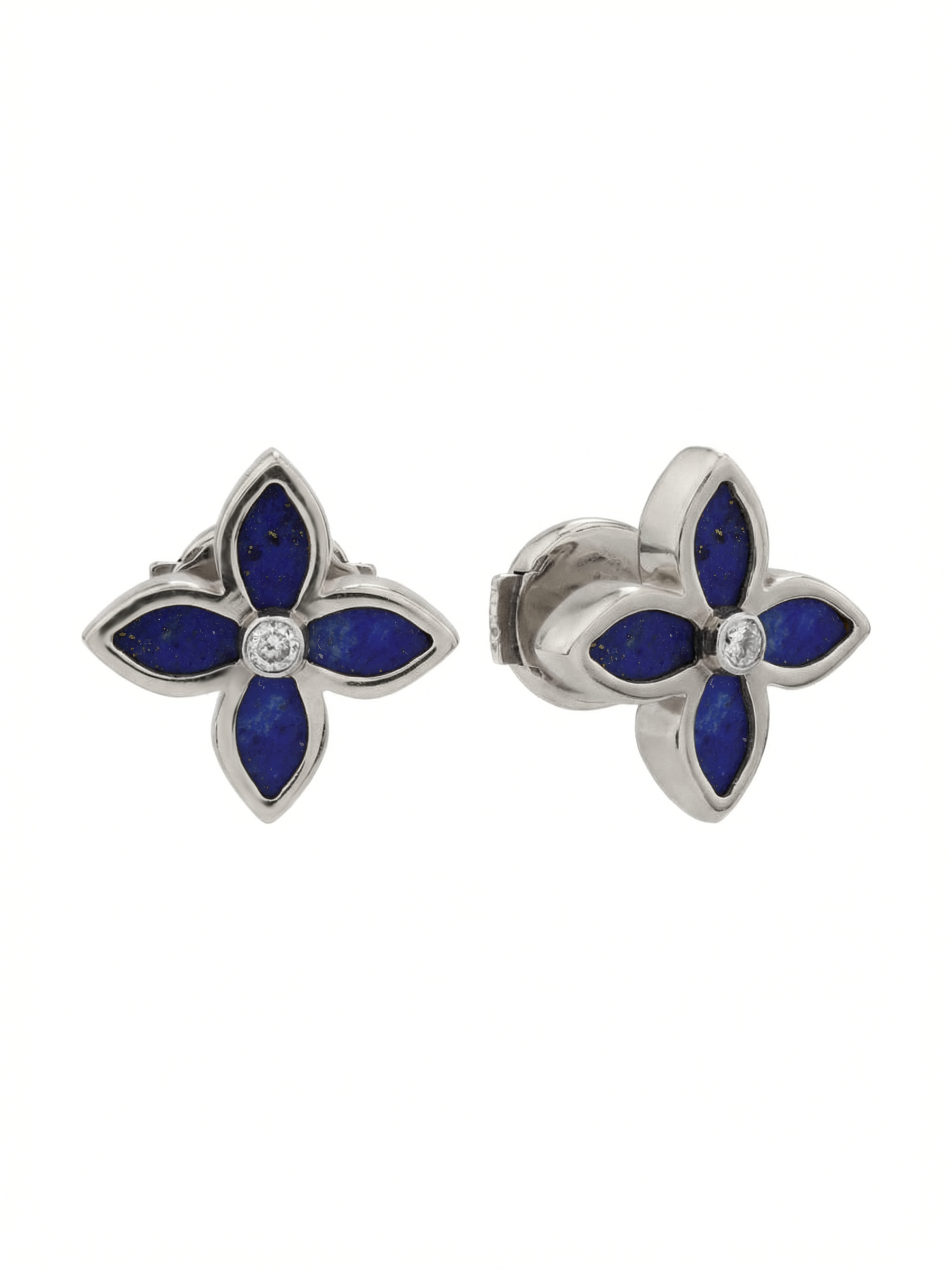 Серьги из белого золота c бриллиантами и лазуритом