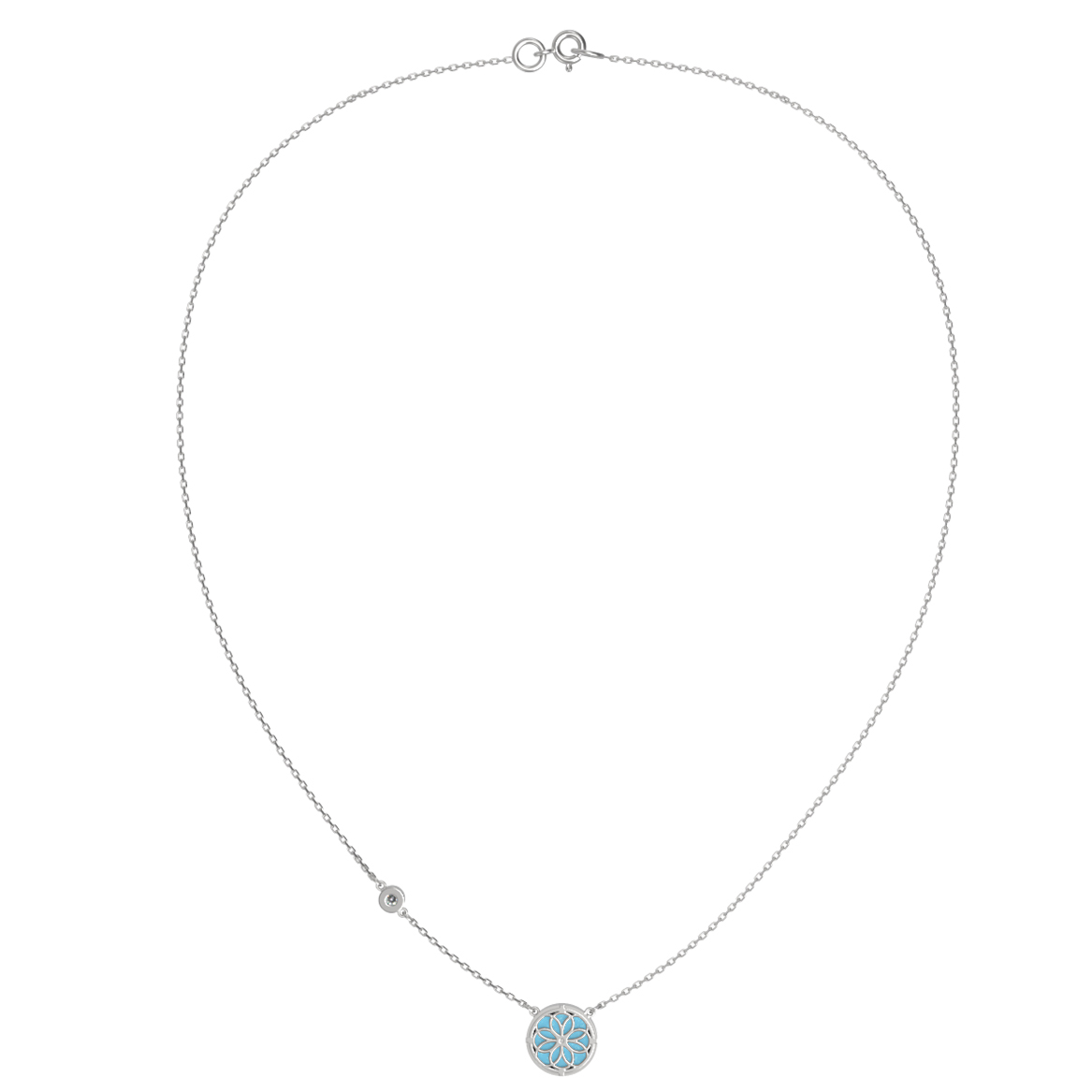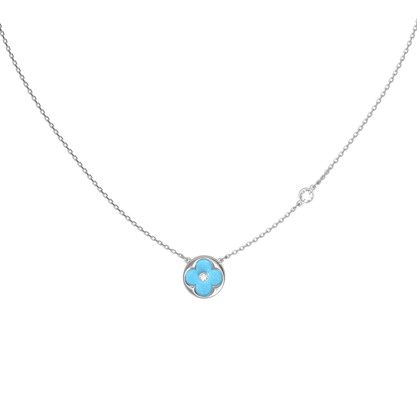 Колье из белого золота c бриллиантами и бирюзой
