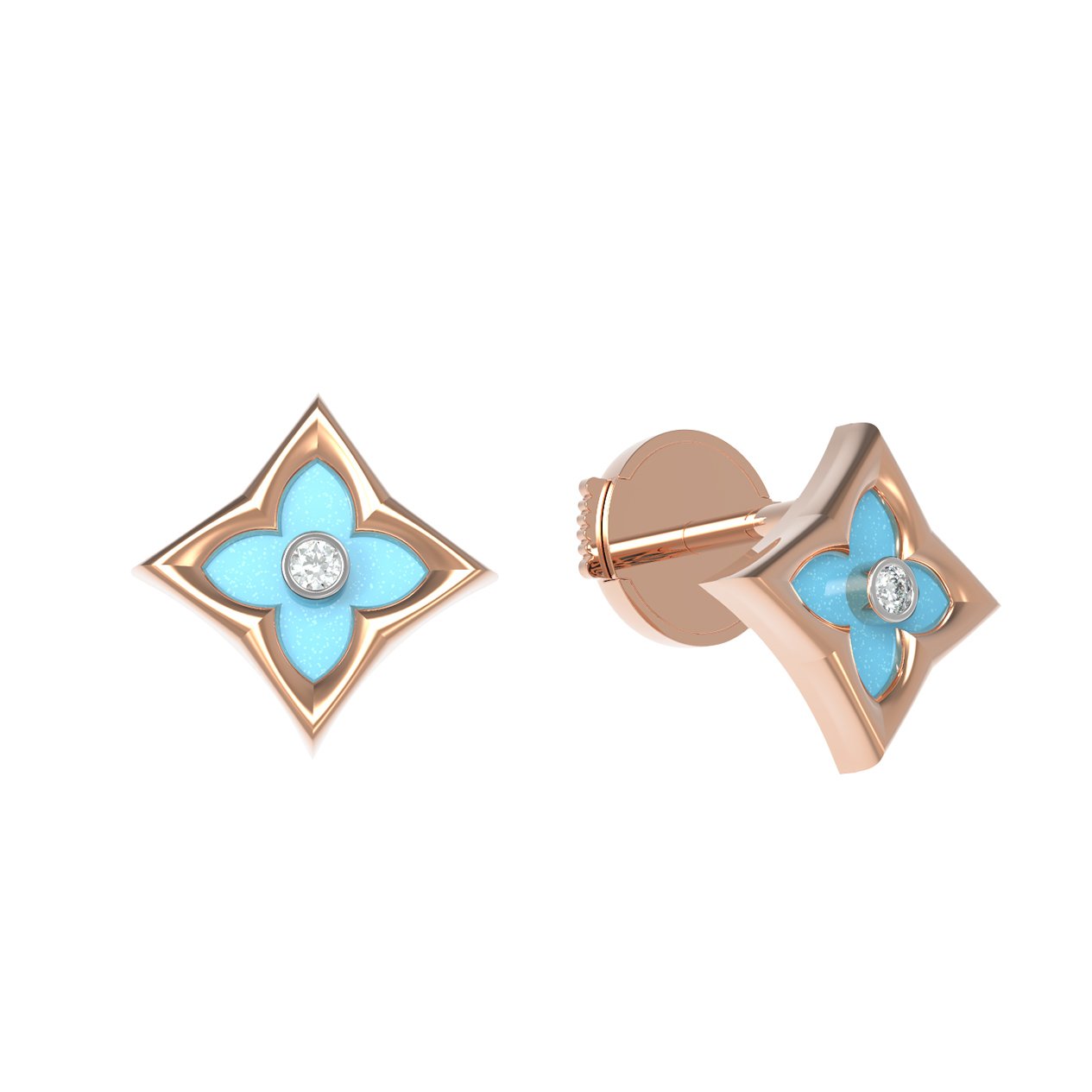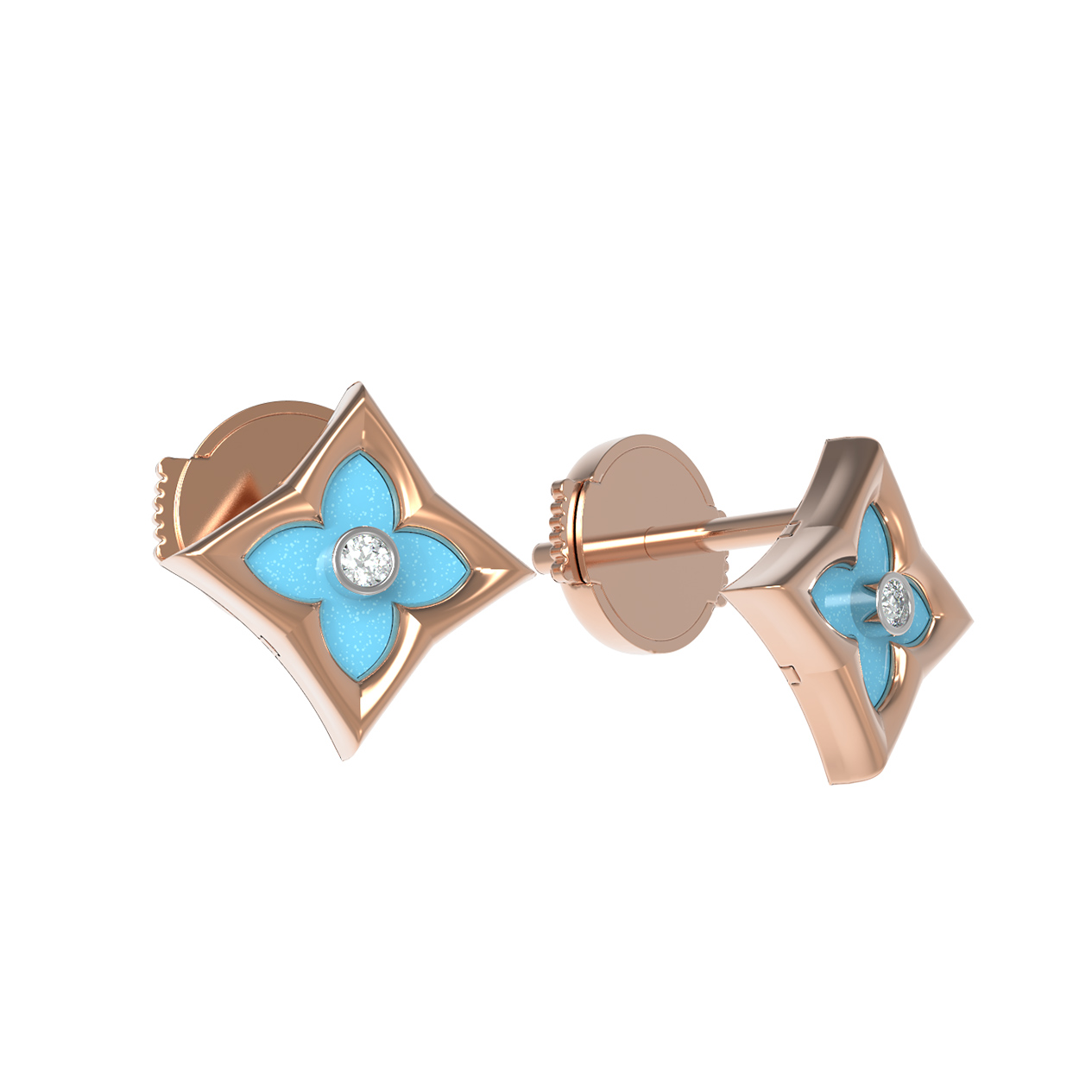Серьги из золота c бриллиантами и бирюзой
