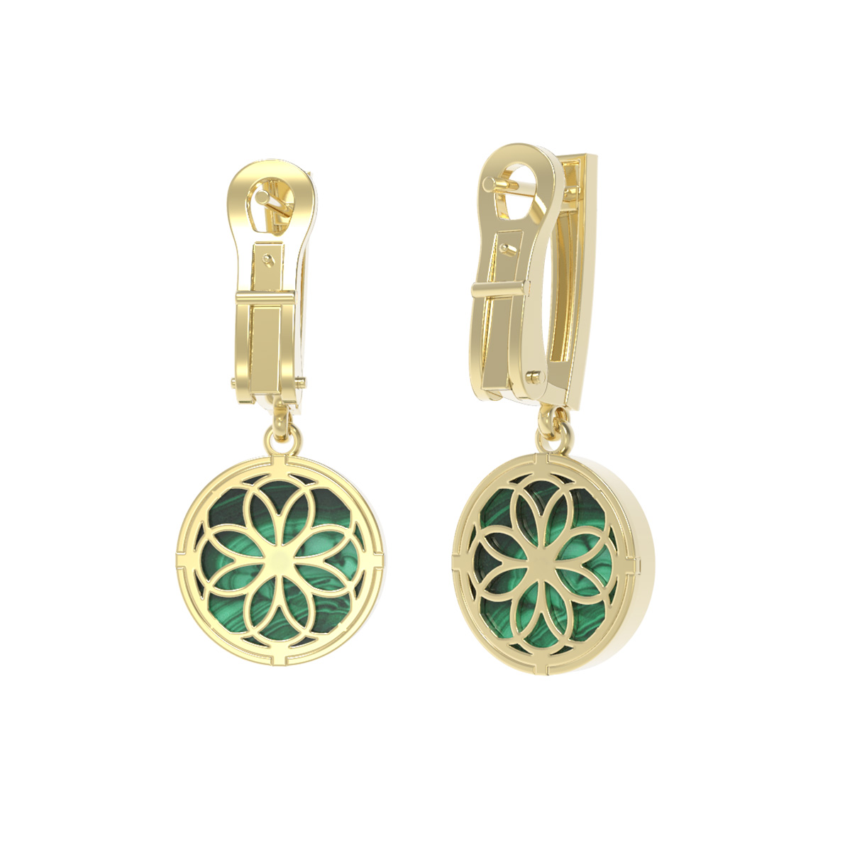 Серьги из лимонного золота c бриллиантами и малахитом