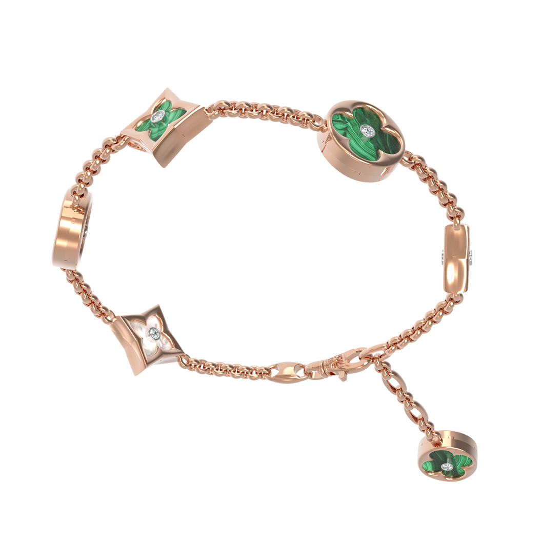 Браслет из золота c бриллиантами, малахитом и перламутром