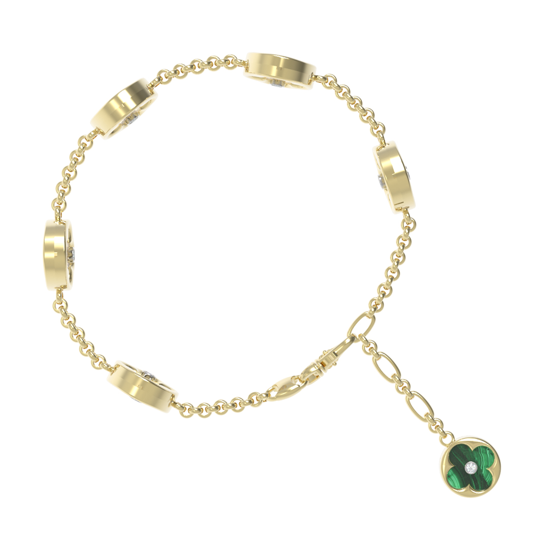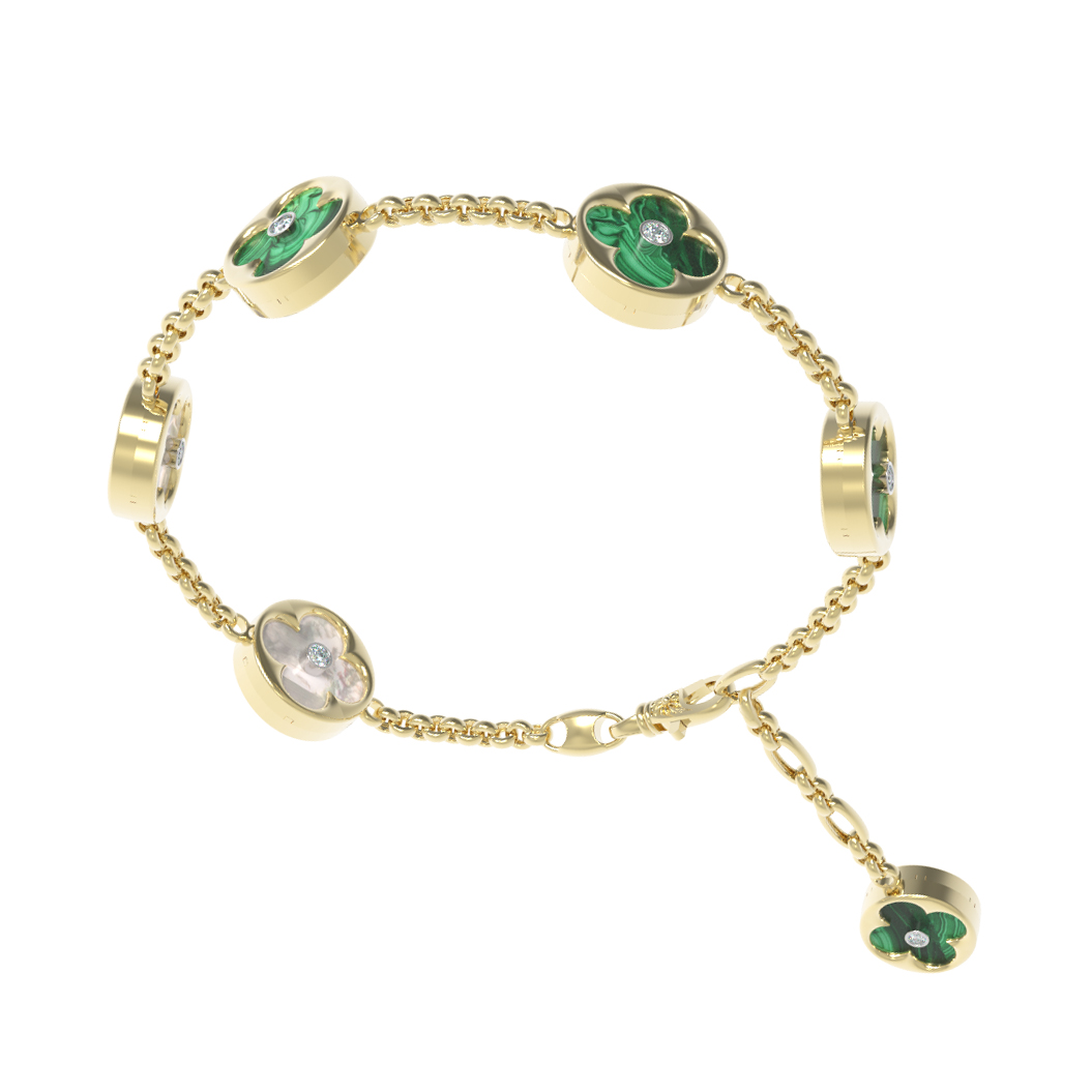 Браслет из лимонного золота c бриллиантами, малахитом и перламутром