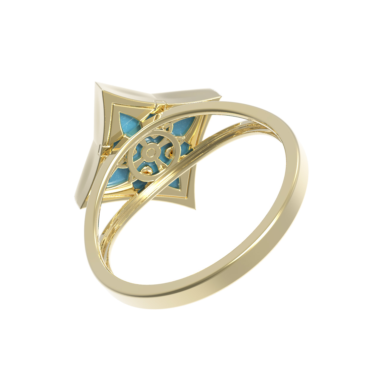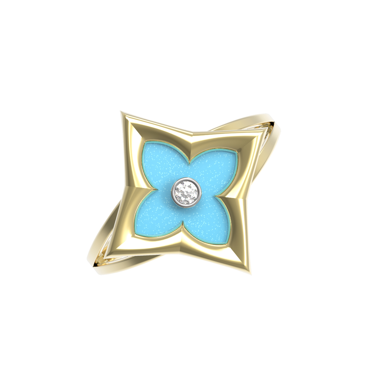 Кольцо из лимонного золота c бриллиантами и бирюзой