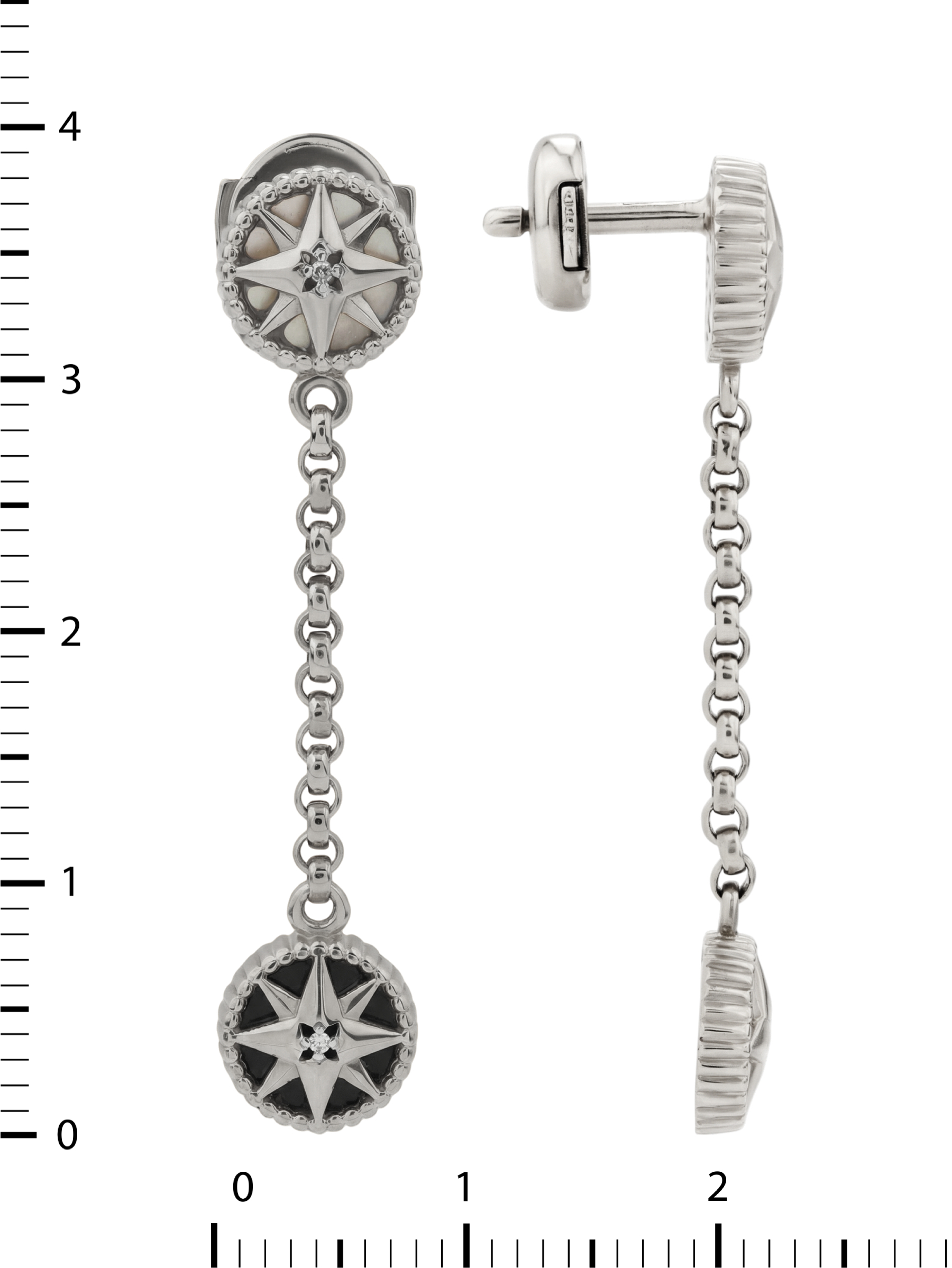 Серьги из белого золота c бриллиантами, ониксом и перламутром