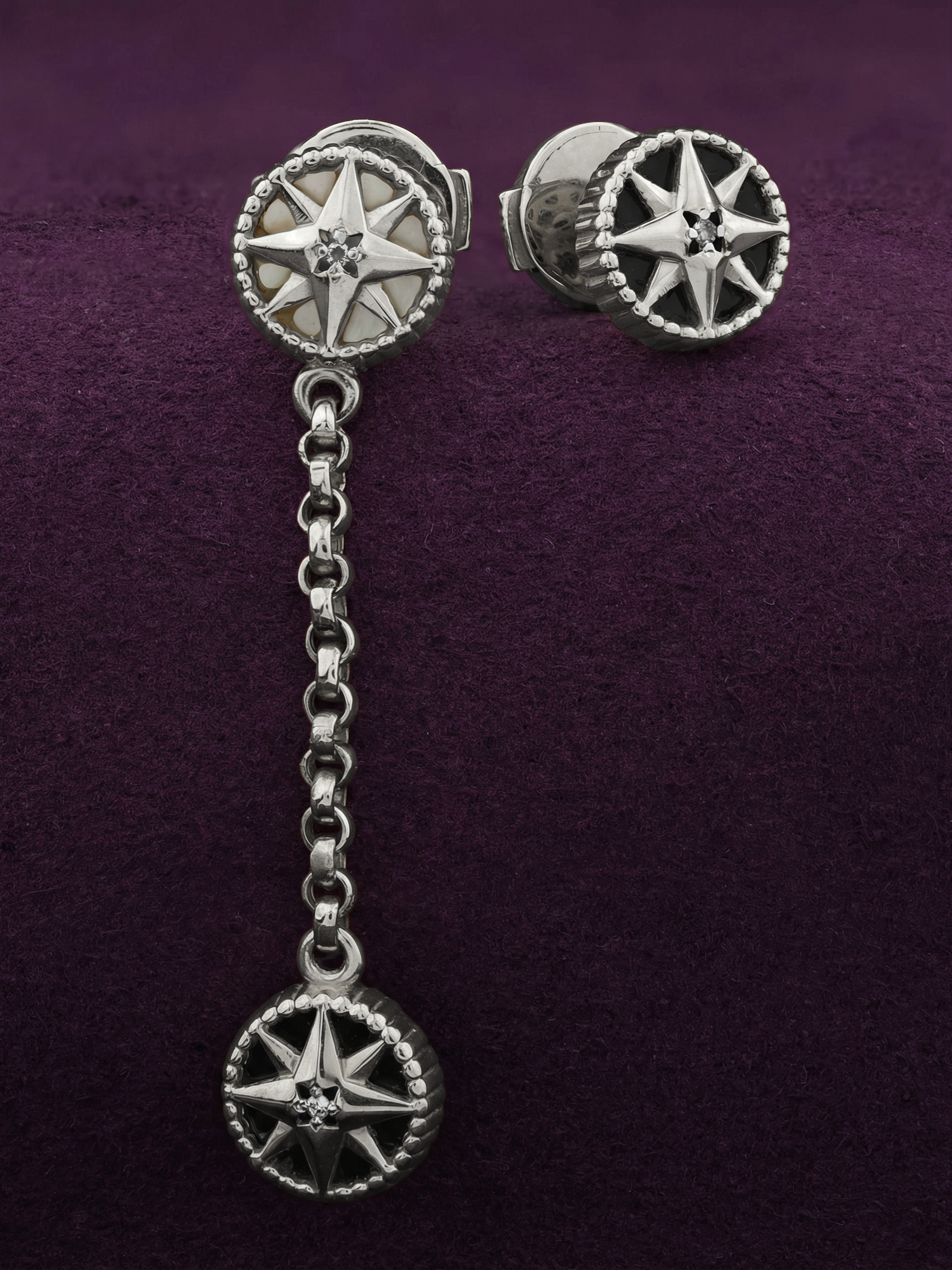 Серьги из белого золота c бриллиантами, ониксом и перламутром