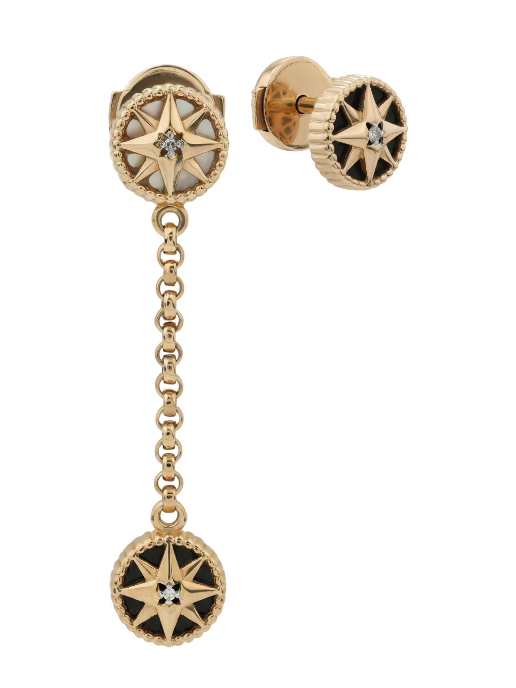 Серьги из золота c бриллиантами, ониксом и перламутром