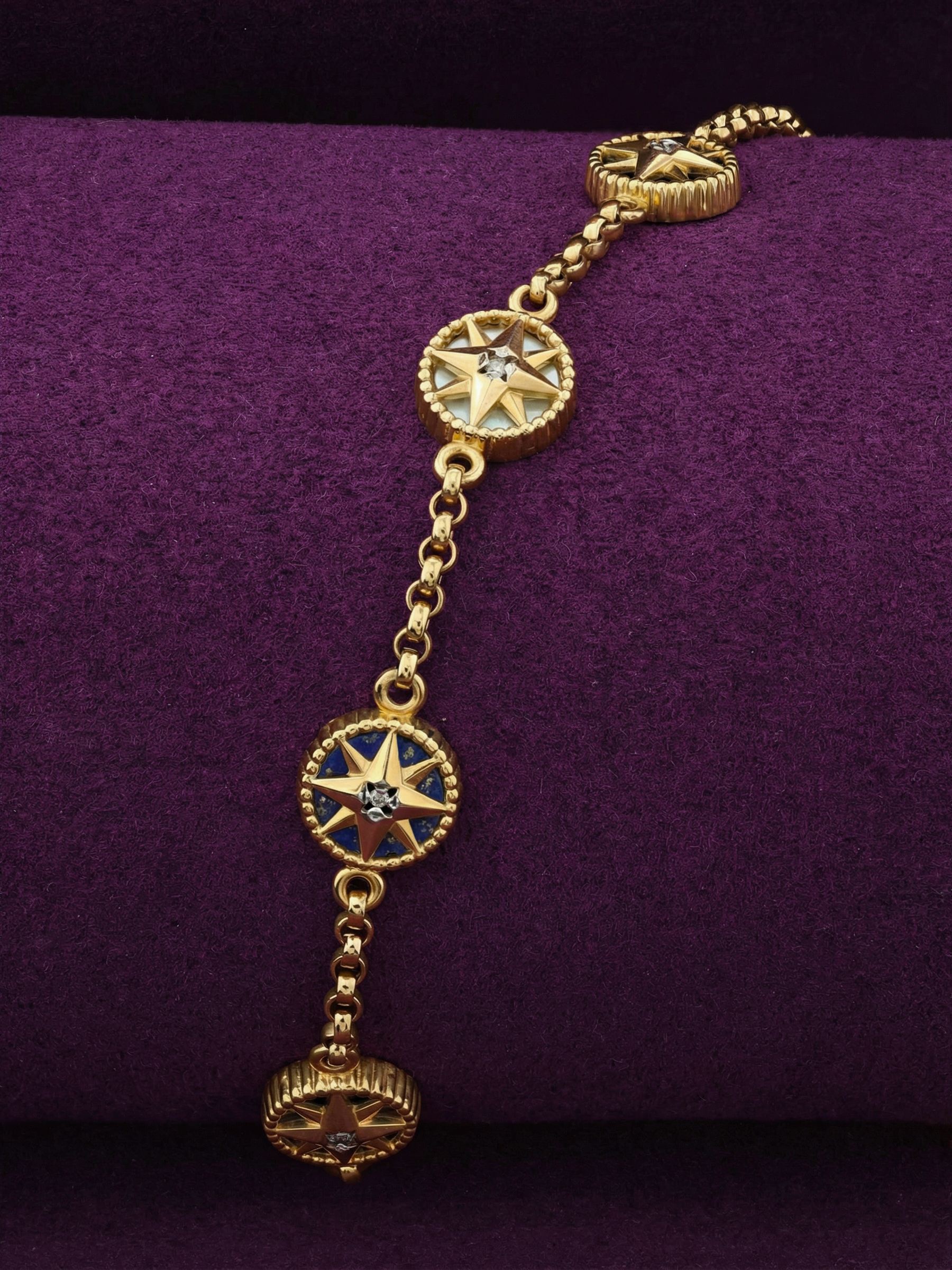 Браслет из лимонного золота c бриллиантами, лазуритом и перламутром