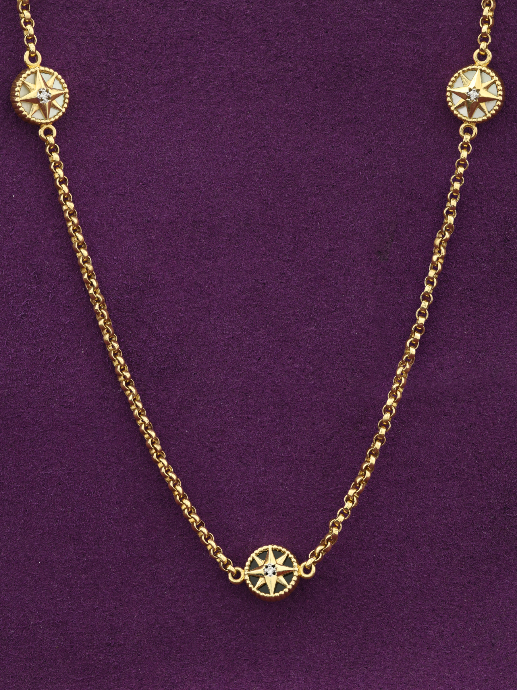 Колье из лимонного золота c бриллиантами, ониксом и перламутром