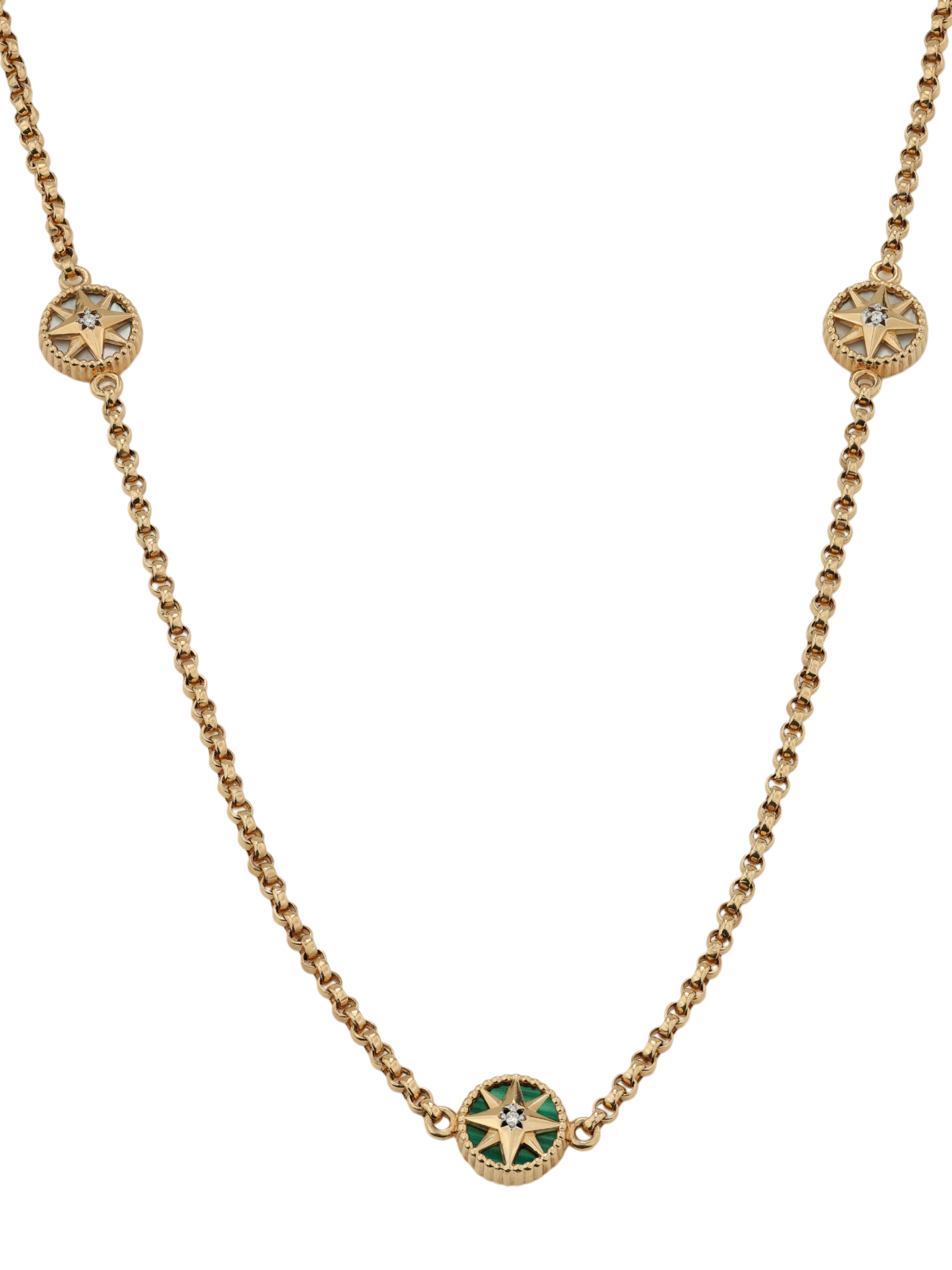 Колье из золота c бриллиантами, малахитом и перламутром