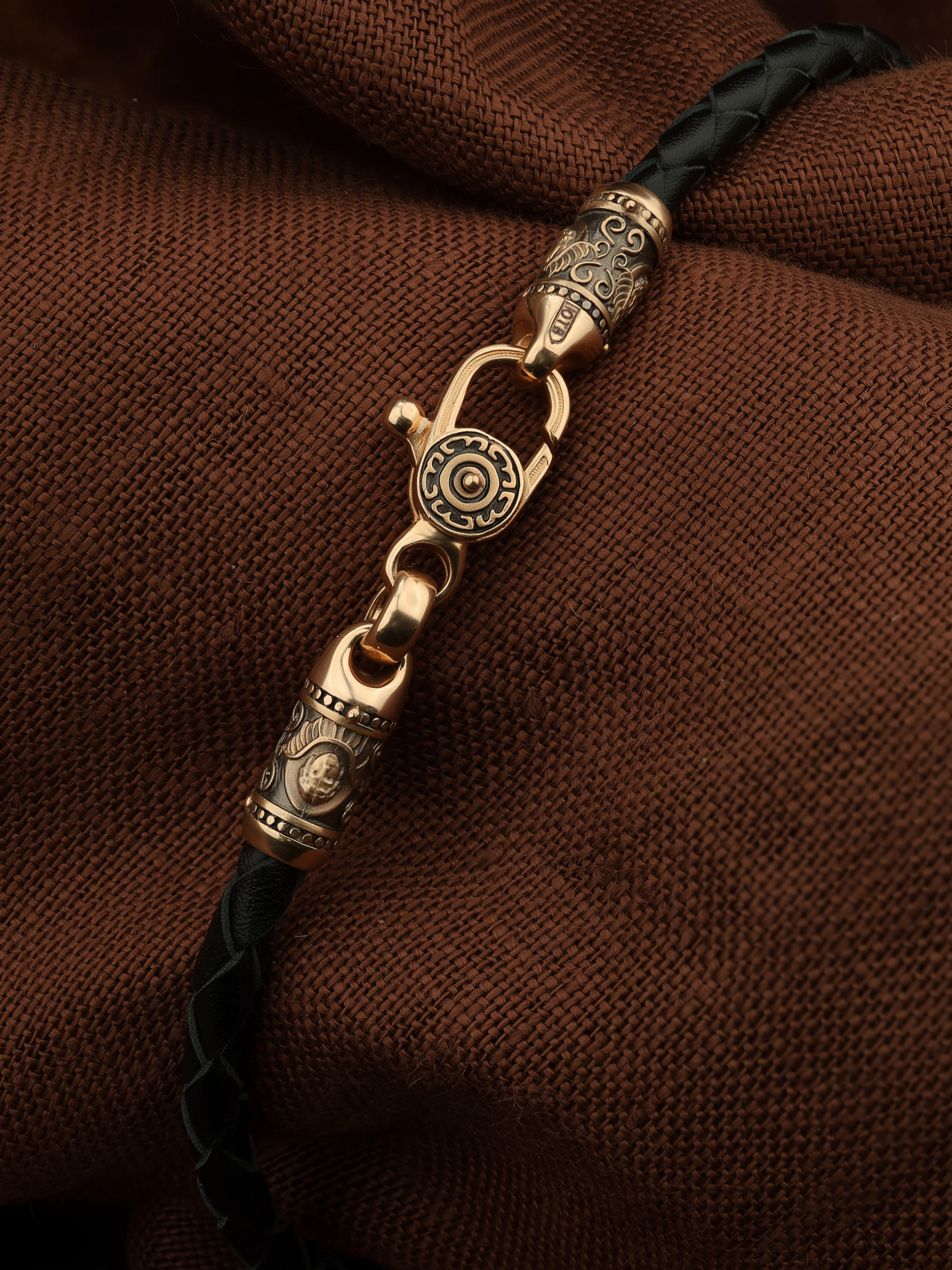 Браслет из золота c кожаным шнурком