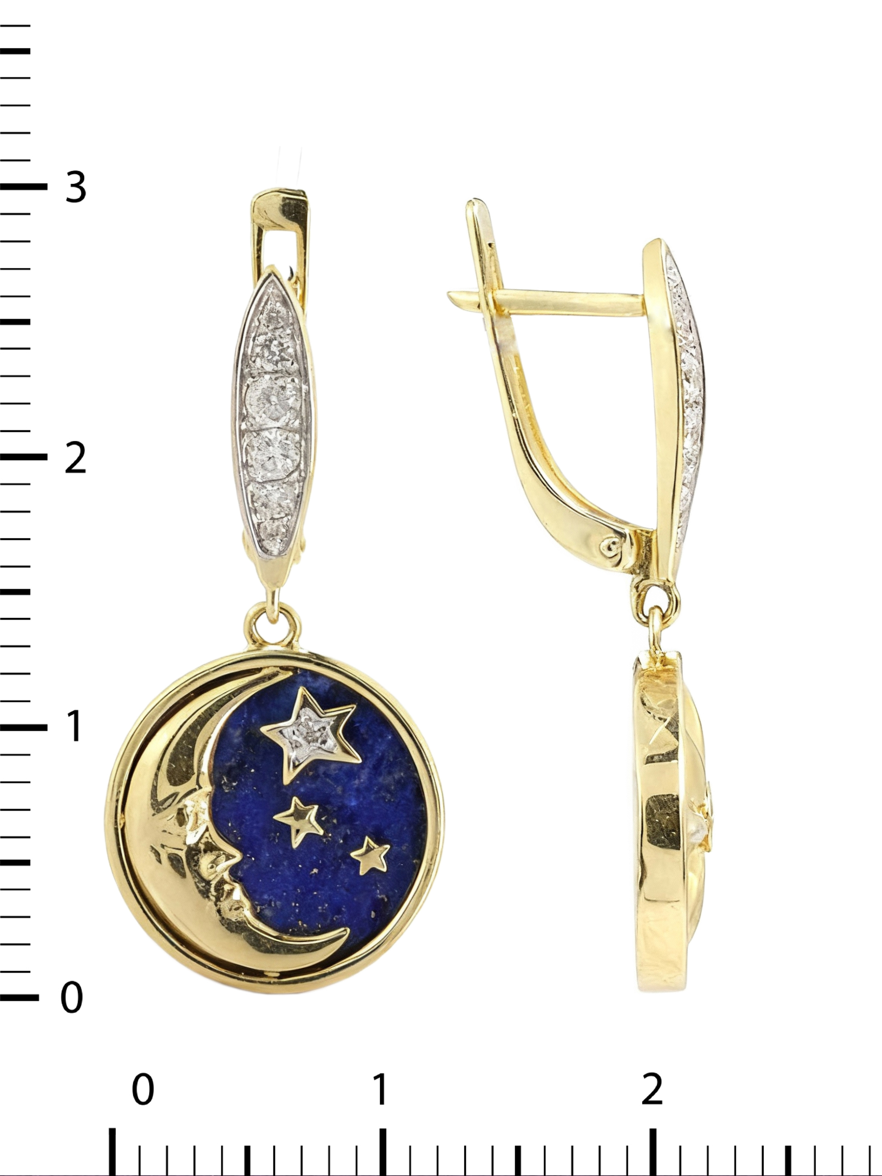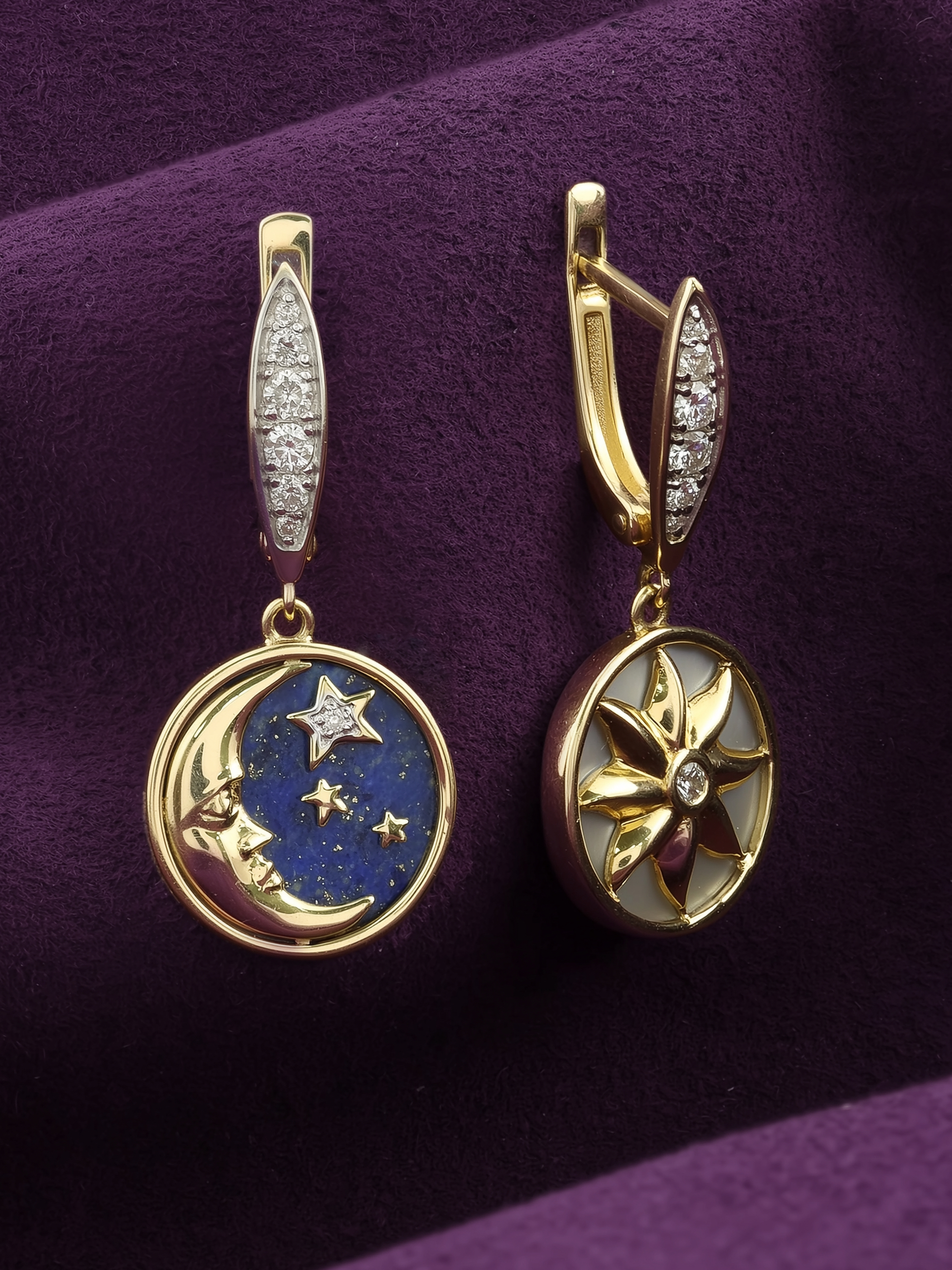 Серьги из лимонного золота c бриллиантами, лазуритом и перламутром