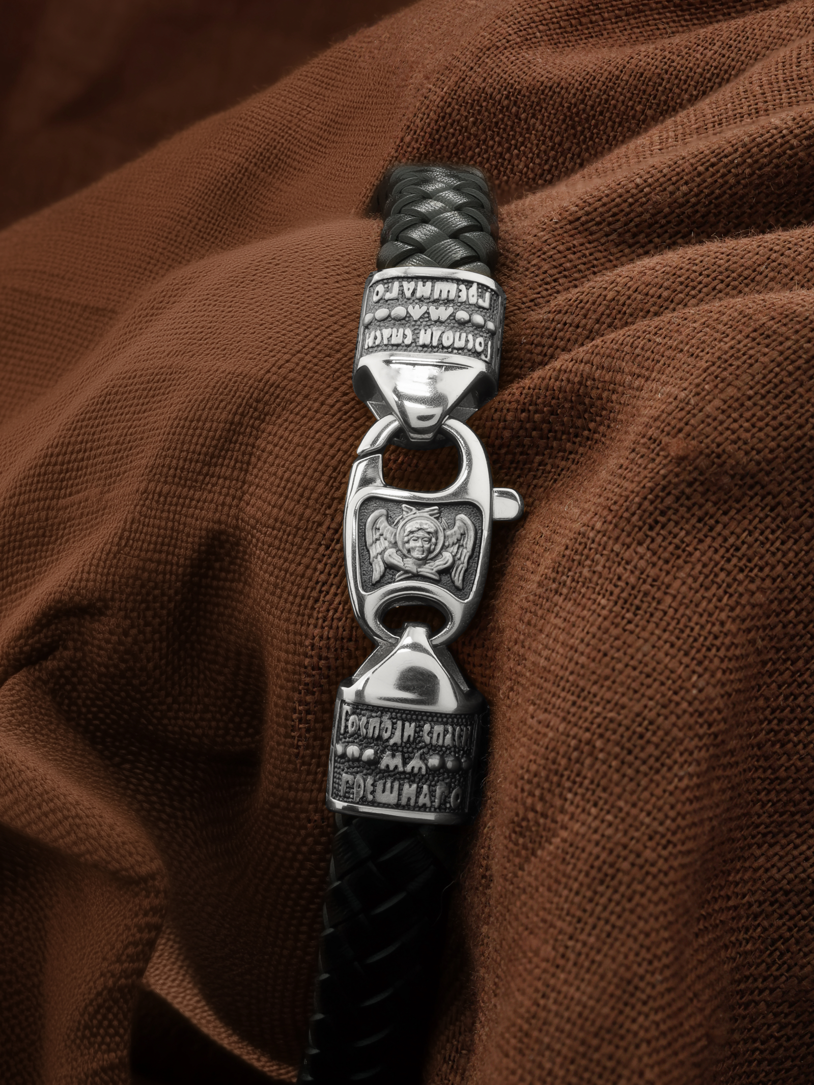 На концах расположены концевики с молитвой: «Господи, спаси мя грешного». Соединяет концевики замочек-карабин в форме рыбки. На замочке изображен шестикрылый Серафим — самый приближенный к Господу Ангел.