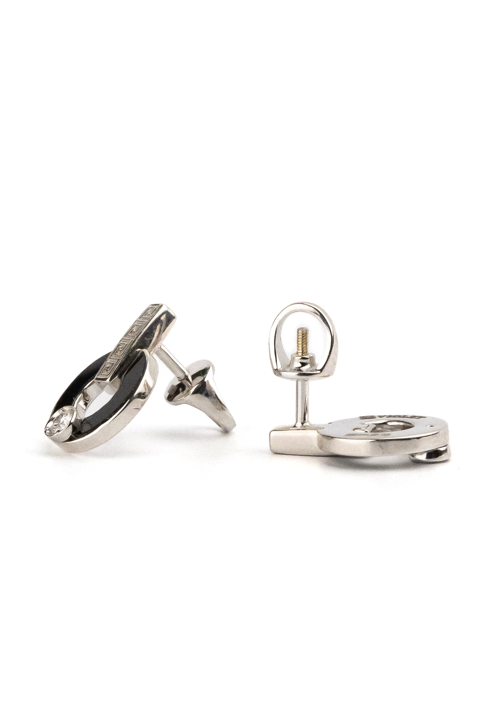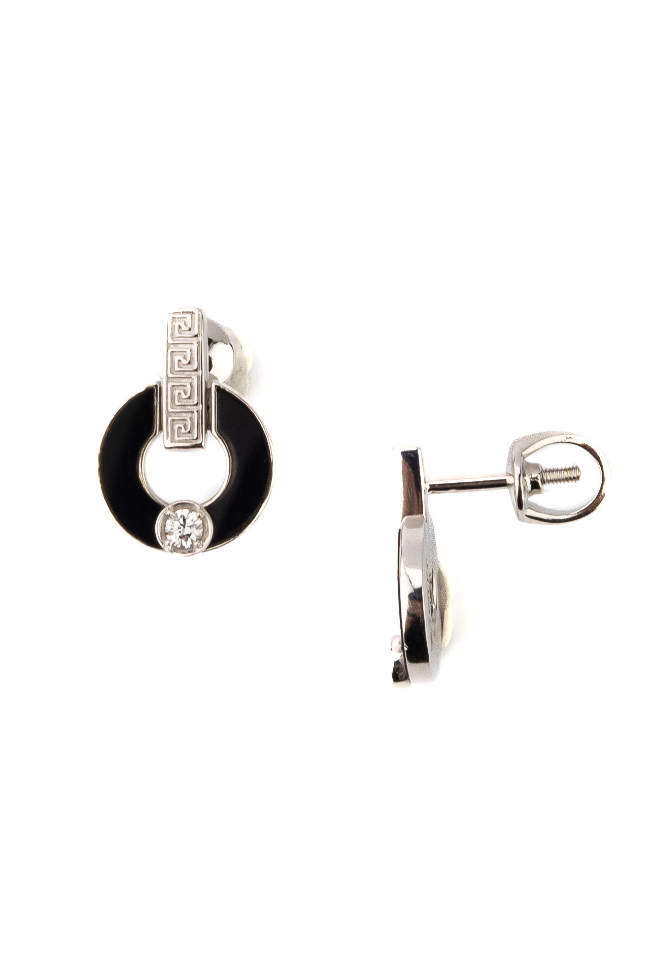 Серьги из белого золота c бриллиантами и ониксом