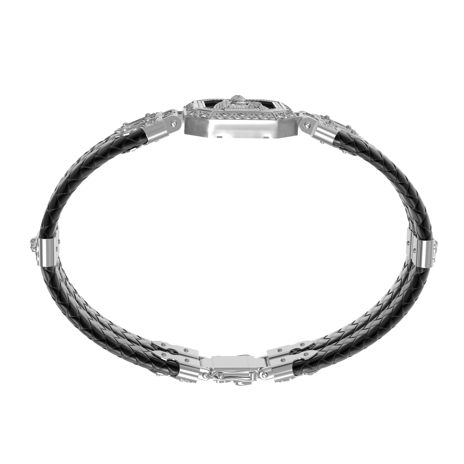 Браслет из белого золота c шнурком и ониксом