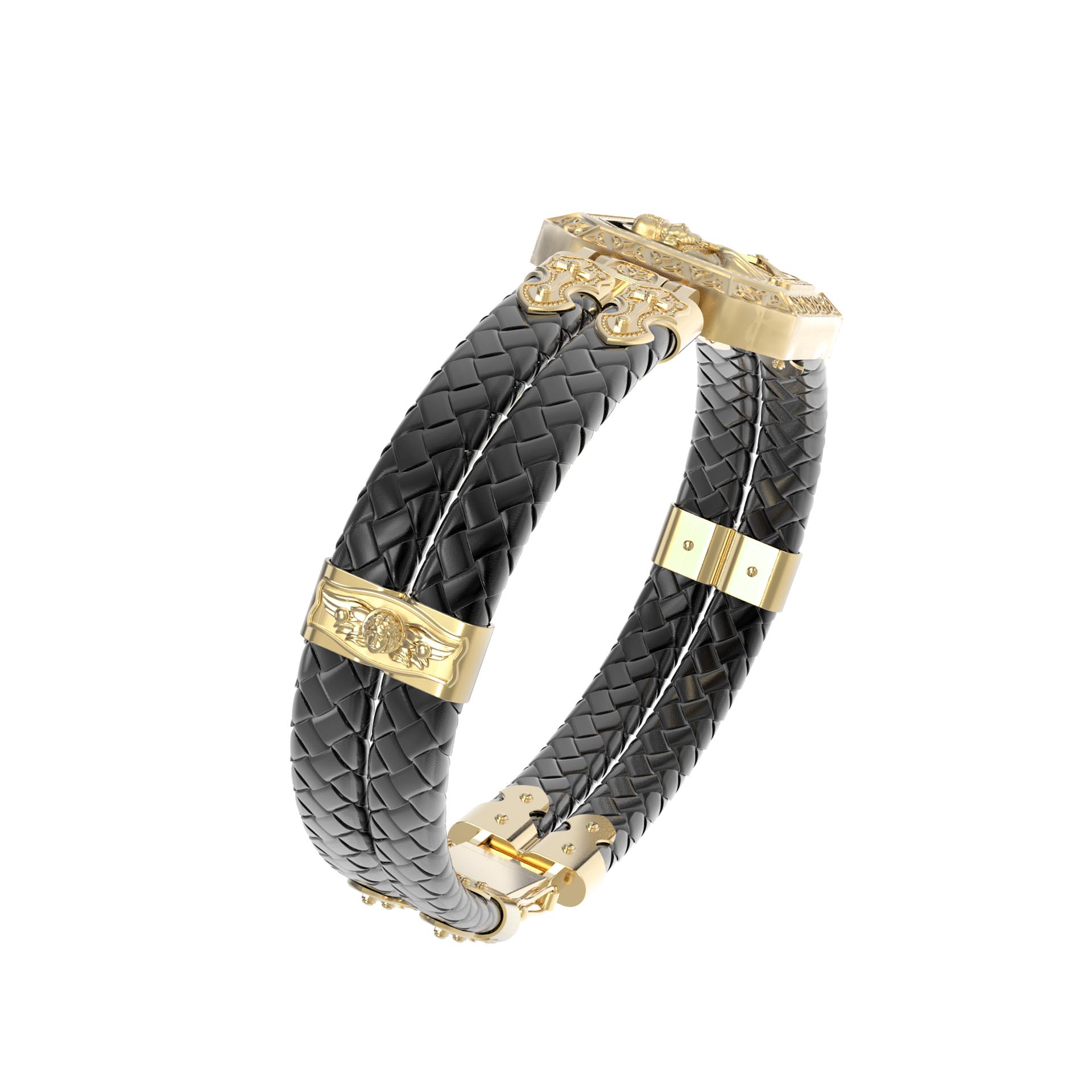 Браслет из лимонного золота c шнурком и ониксом