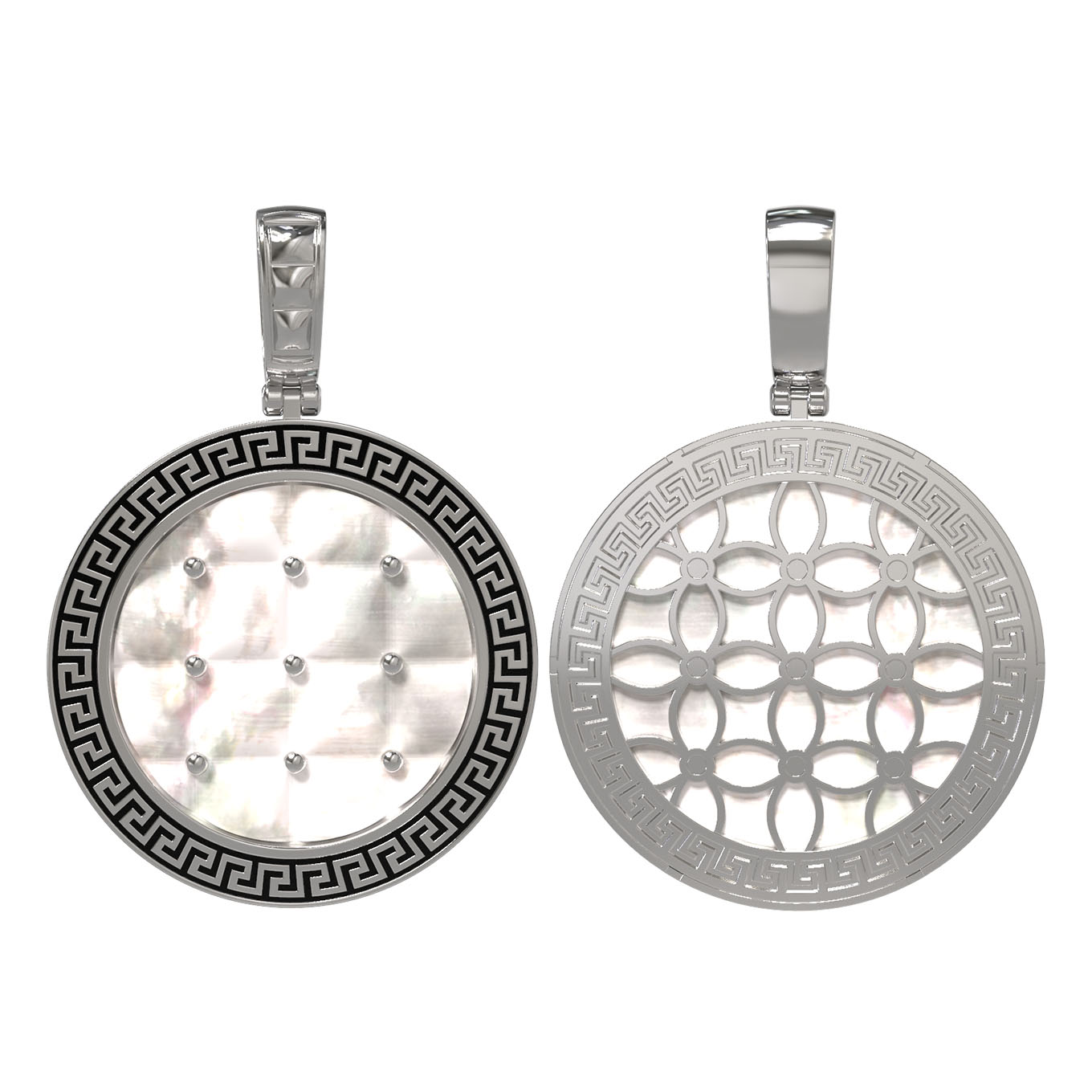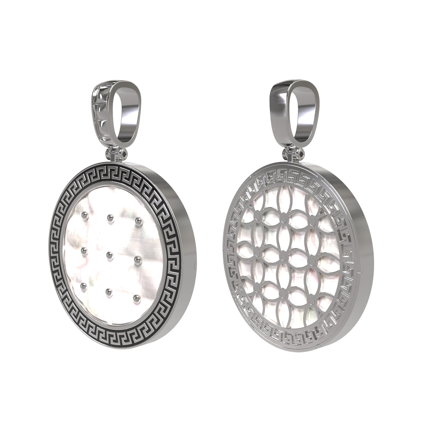 Подвеска из белого золота c эмаль и перламутром