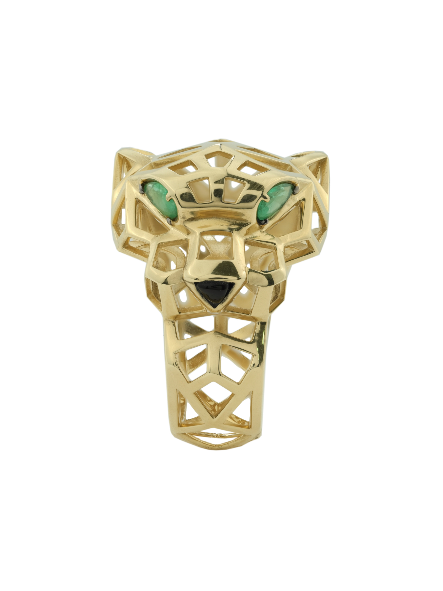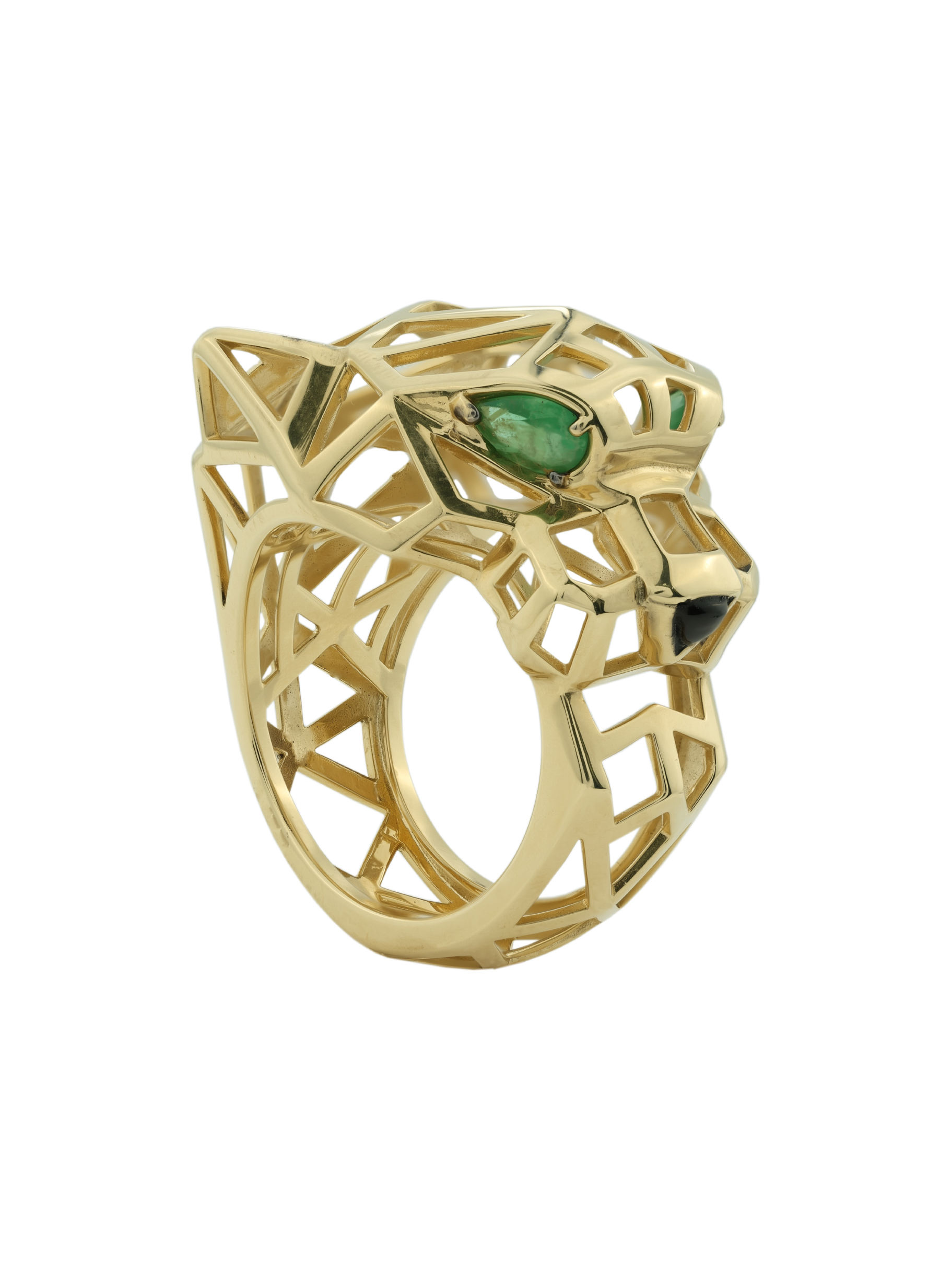 Кольцо из лимонного золота c изумрудом и ониксом